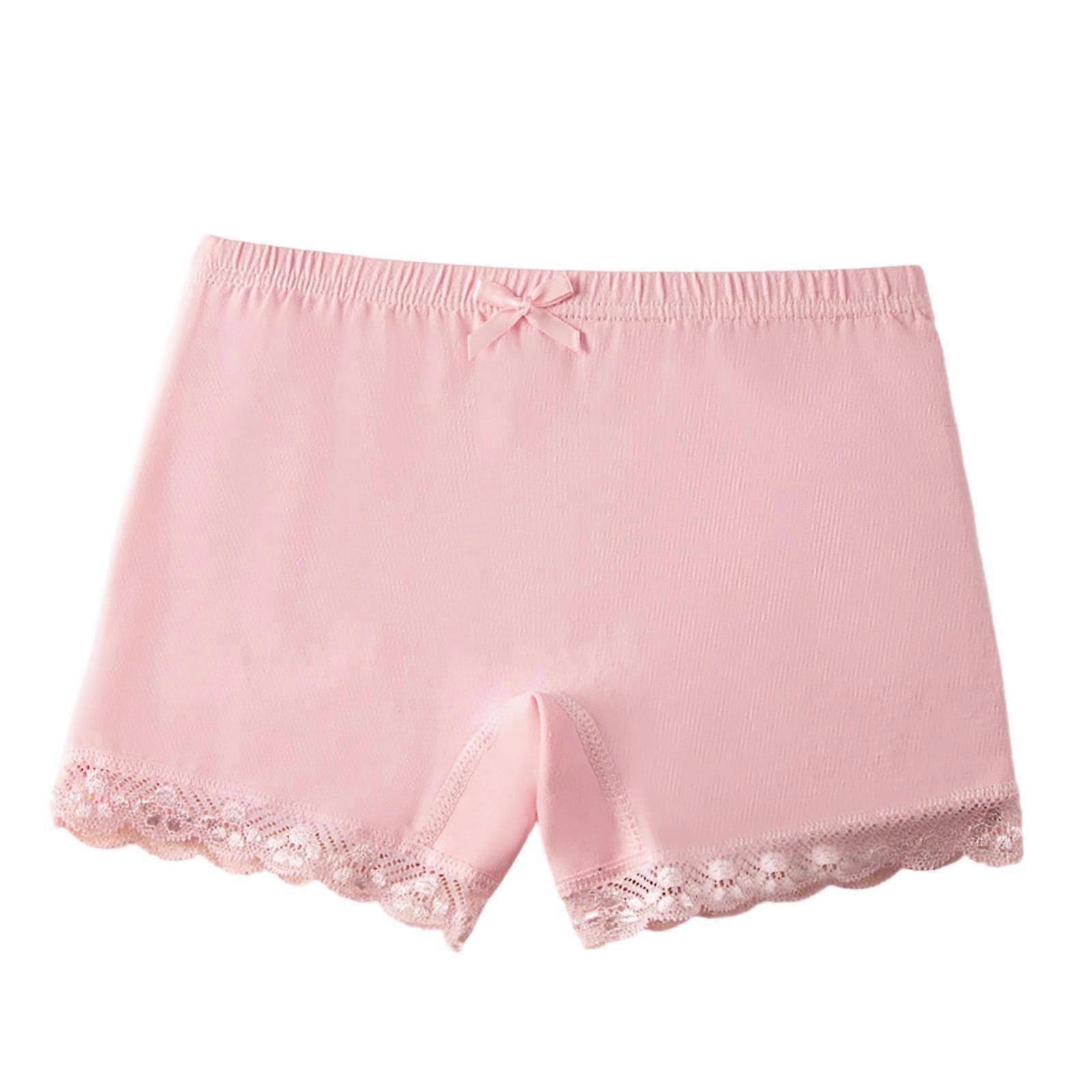 Girls Shorts Solid Color Lace Trim Under Dress Child Trendy Vacation Panties,Pink,13-14 Years