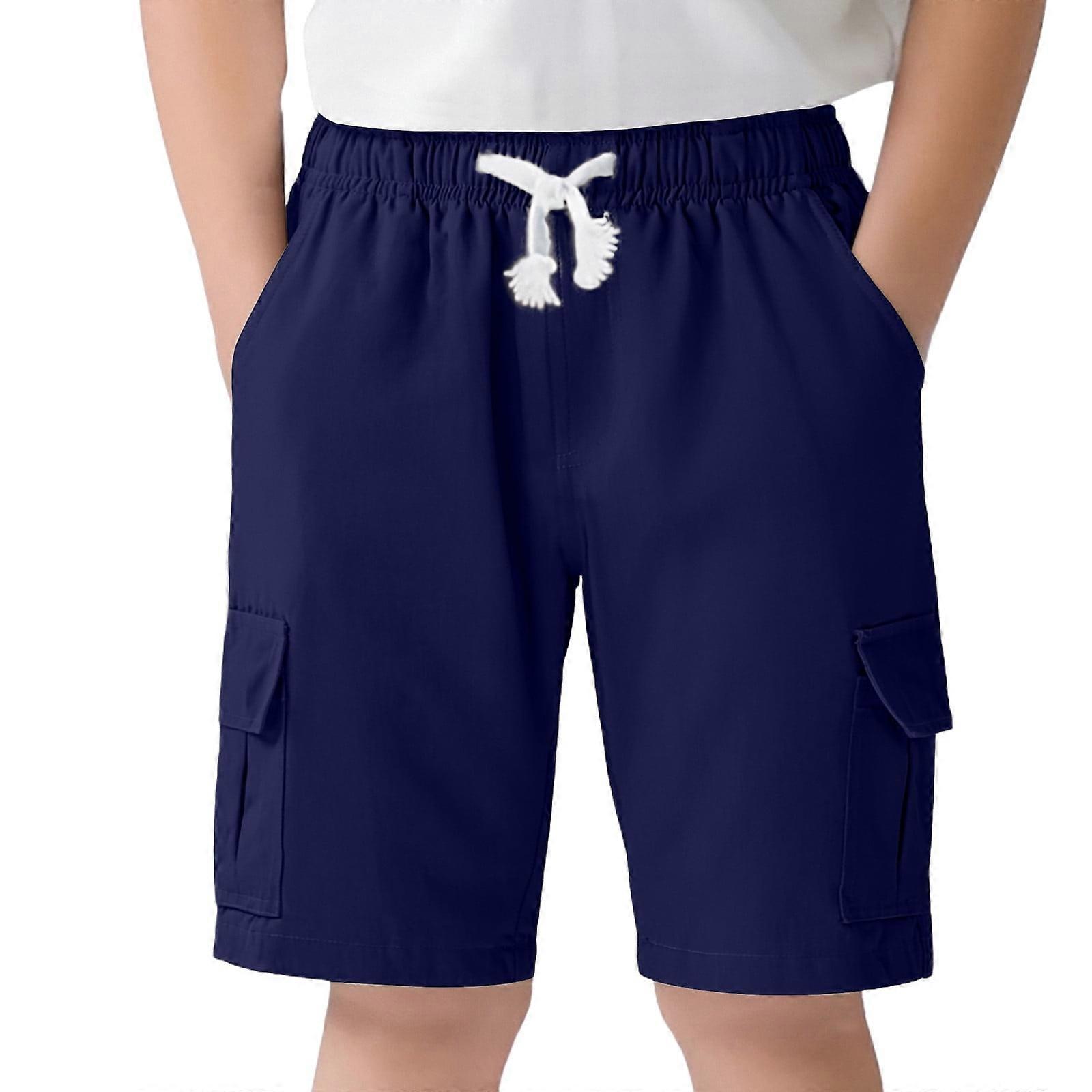 Boys School Uniform Shorts Solid Color Elastic Waist Drawstring Dress Shorts With Pockets Boys Comfortable Birthday Shorts,Blue,9-10 Years