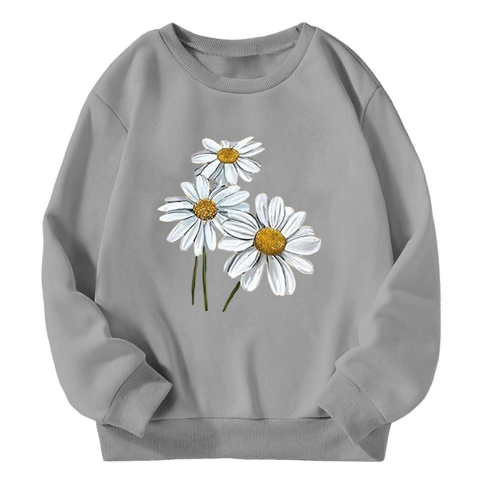 Girls Sweatshirts Cartoon Flower Printed Long Sleeve Round Neck Pullover Tops Toddler Comfort Casual Outing Sweatshirts,Grey,3-4 Years