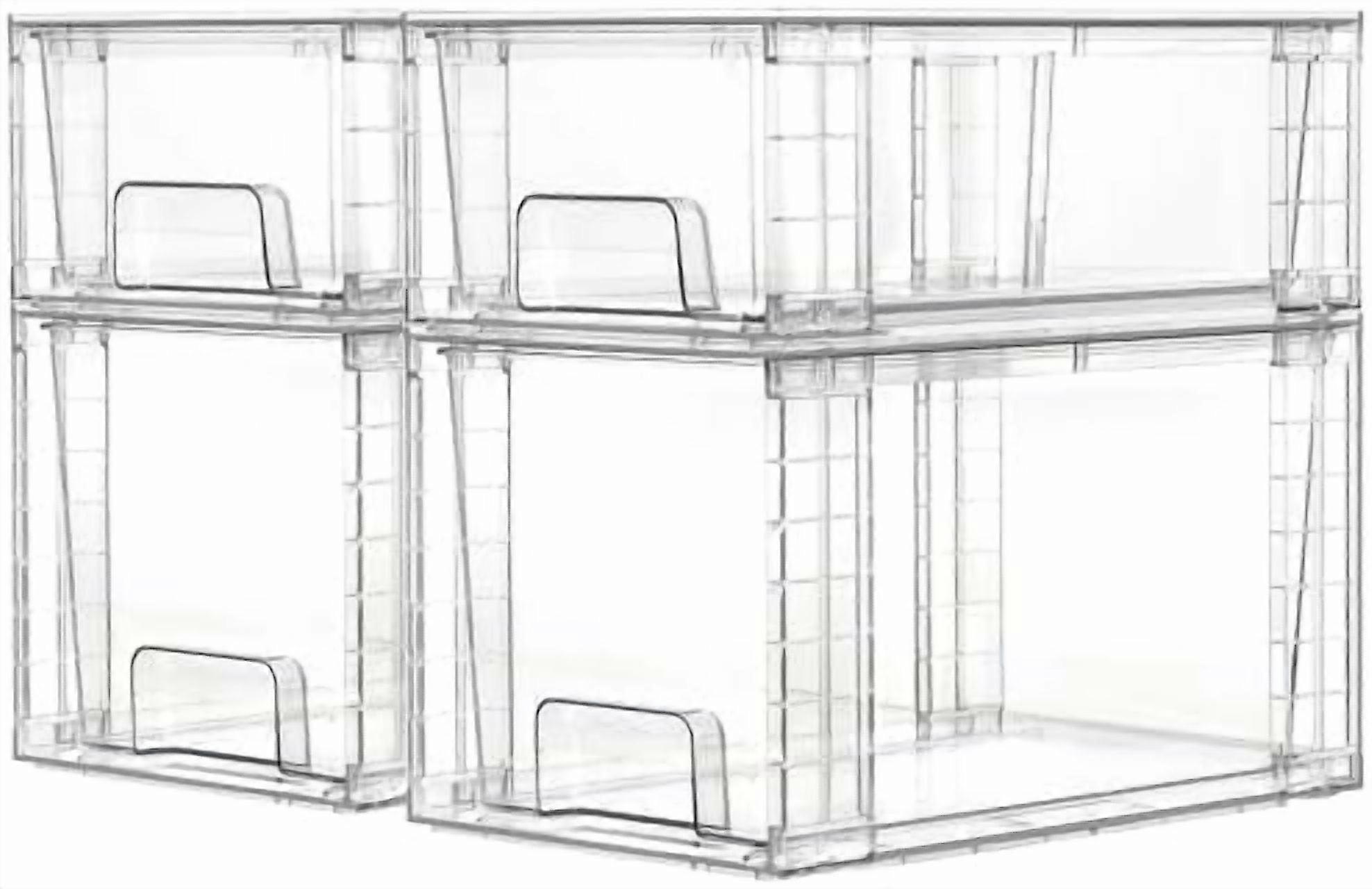 4-Pack Clear Stackable Storage Drawers with Handles—Easy Assembly, Compatible with Bathroom, Kitchen, Pantry & Under-Sink Organization