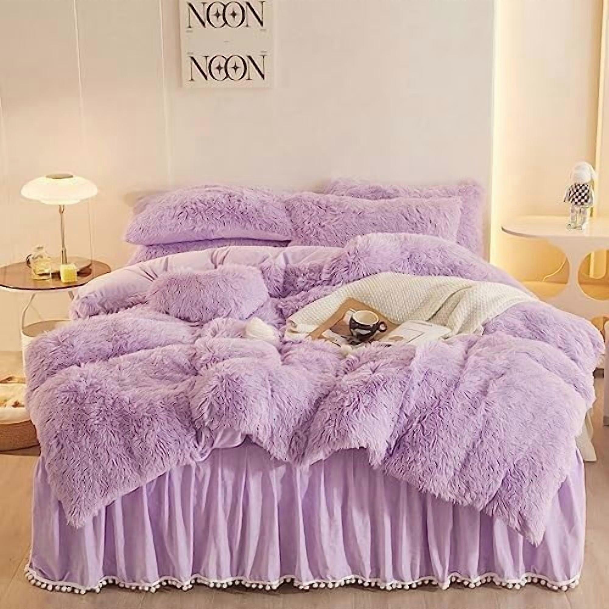 Shaggy Lavender Comforter Cover Queen Set – 3-Pc Fluffy Bedding (1 Duvet Cover + 2 Pillow Cases), Zipper Closure, Compatible with Queen Duvet