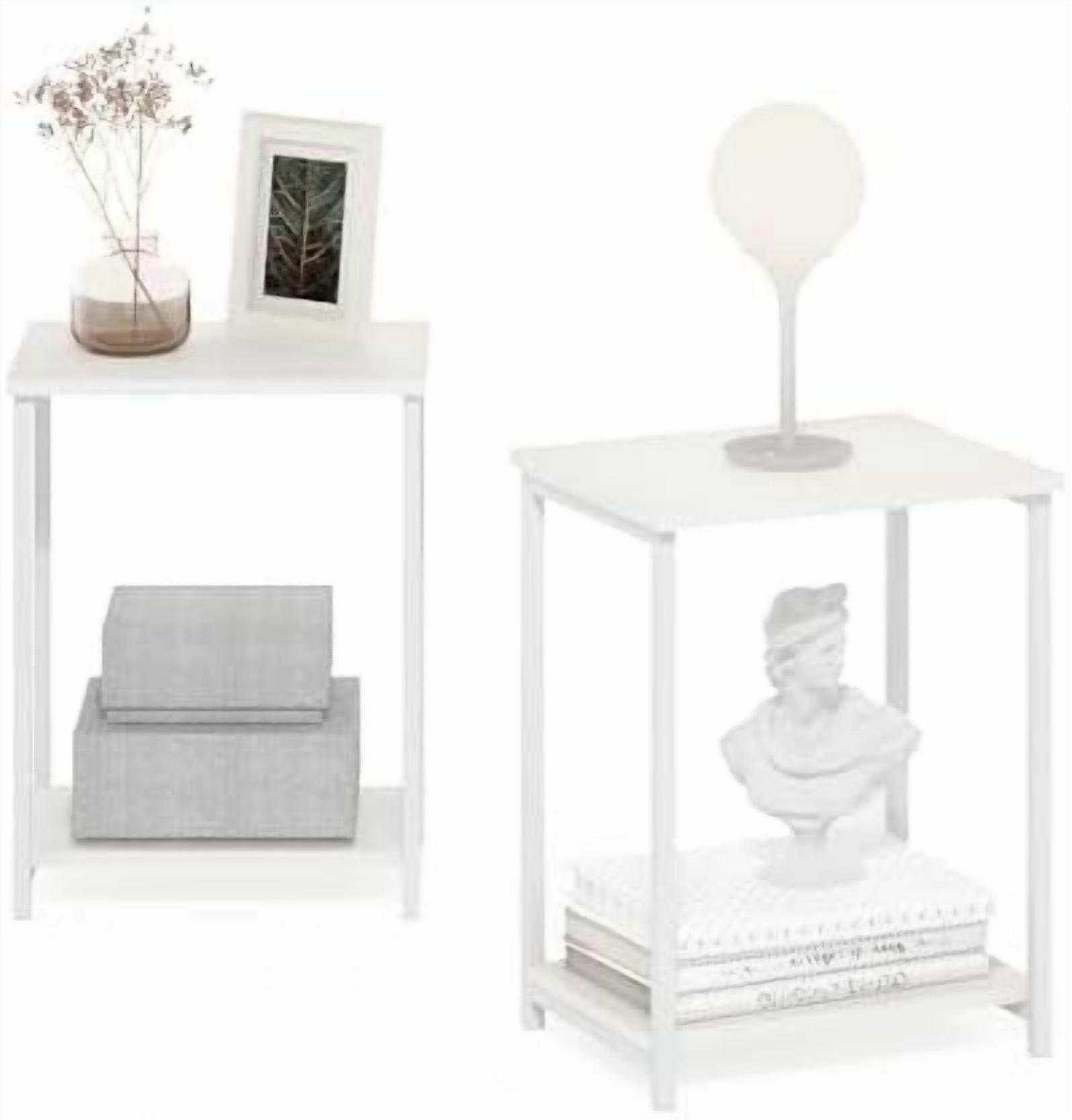 Simplistic Side Table Set of 2, 2-Tier Metal Frame Modern End Table with Open Shelf, Night Stand, Bedside Table, for Living Room, Bedroom, White