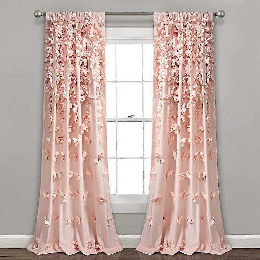 Riley Light Filtering Window Curtain Panel, Single 54" W x 95" L, Blush - Cute Pink Curtains for Bedroom - Bow Decor - Coquette Curtains for Windows