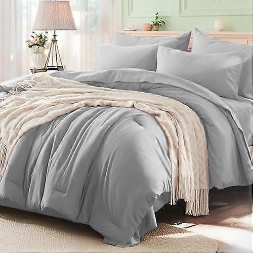 Light Grey California King 7-Pc Comforter Set: Bed in a Bag w/ Sheets, All-Season, 1 Comforter, 2 Shams, 2 Pillowcases, 1 Flat & 1 Fitted Sheet