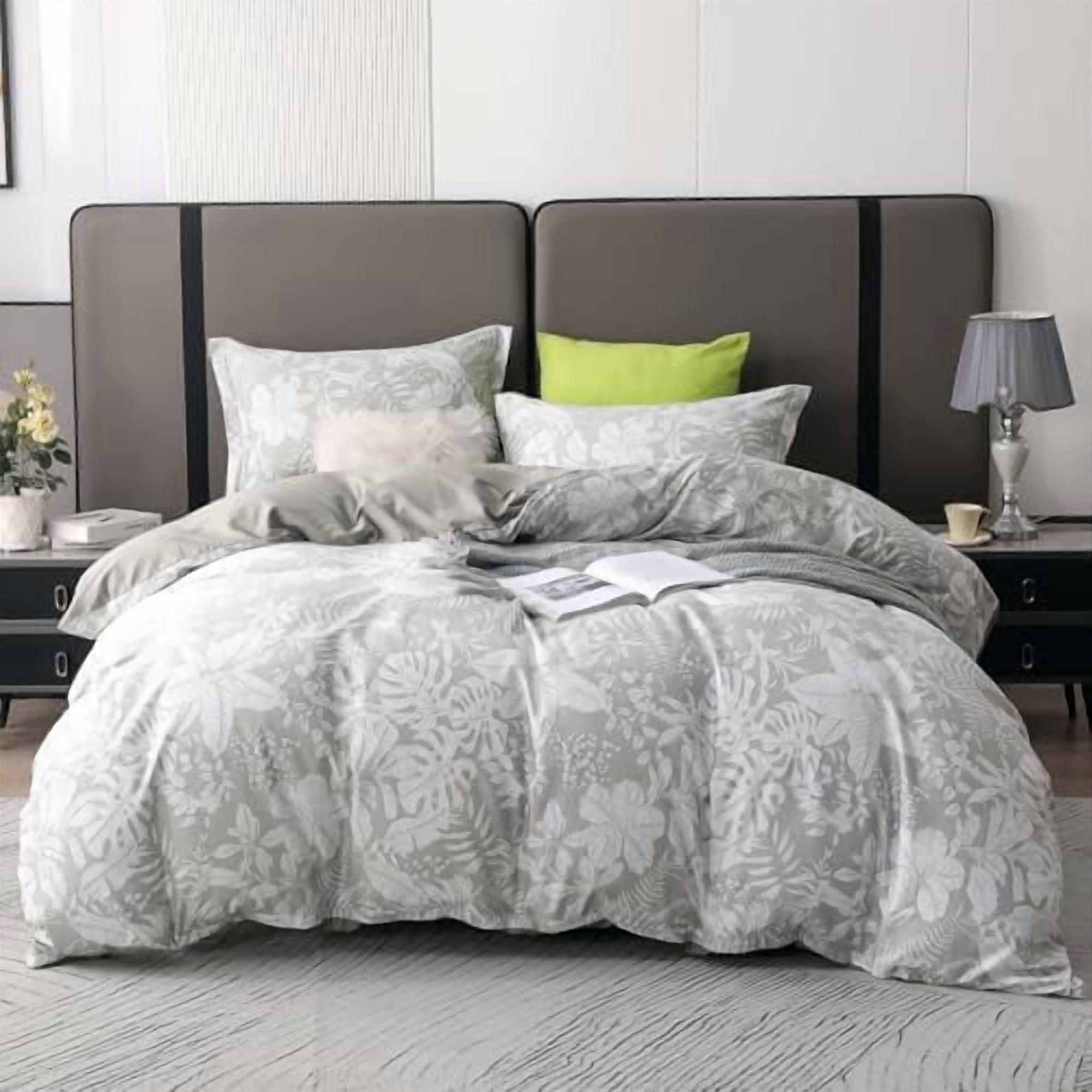 Queen Floral Duvet Cover Set, 600TC 100% Long Staple Cotton, 3-Pc, Zipper + Corner Ties, Breathable