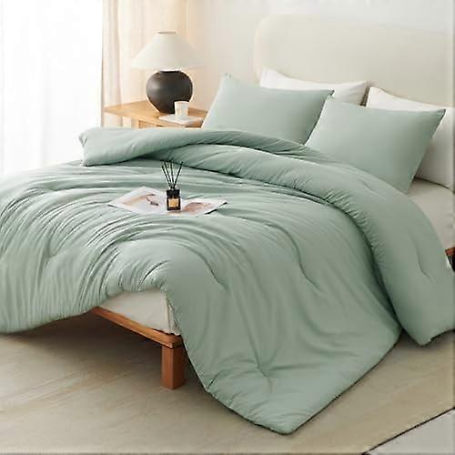 Sage Green King Comforter Set (1 Comforter + 2 Pillowcases), 3-Pc Breathable Quilted Microfiber Bedding, All-Season Luxury Soft Comforter