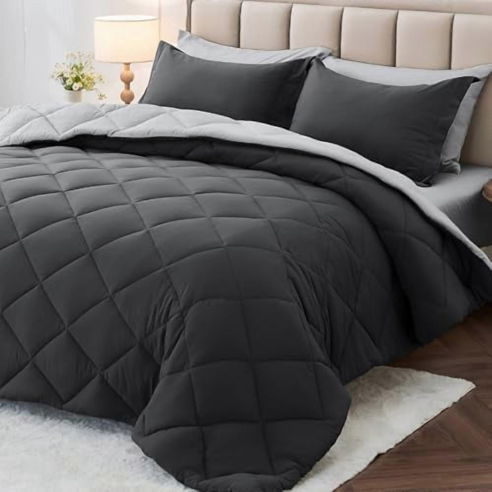 7-Pc California King Comforter Set, Reversible All-Season Bedding (Dark & Light Grey), Compatible with Cal King Beds