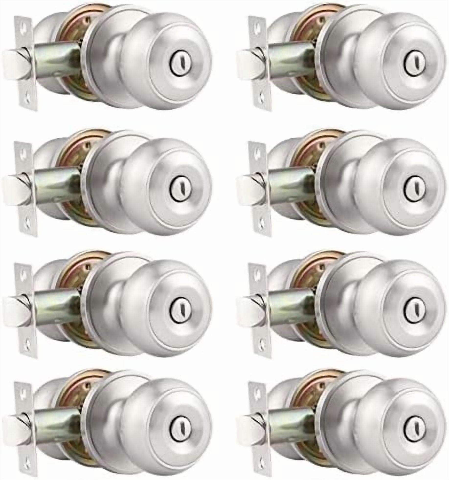 8-Pack Keyless Privacy Door Knobs in Satin Nickel, Adjustable Latch Backset, Compatible with Standard Doors