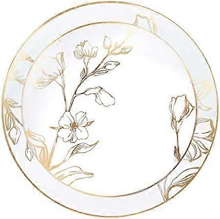 80-Pc Combo Plates Set: 40x7" + 40x10" White Floral Plastic Party Plates with Gold Rim, Premium Heavyweight Tableware