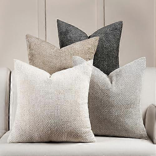 Boho Throw Pillow Covers 20x20, Set of 4 Neutral Chenille Cushion Covers for Couch, Sofa, Bedroom – Compatible with Farmhouse & Mid-Century Modern