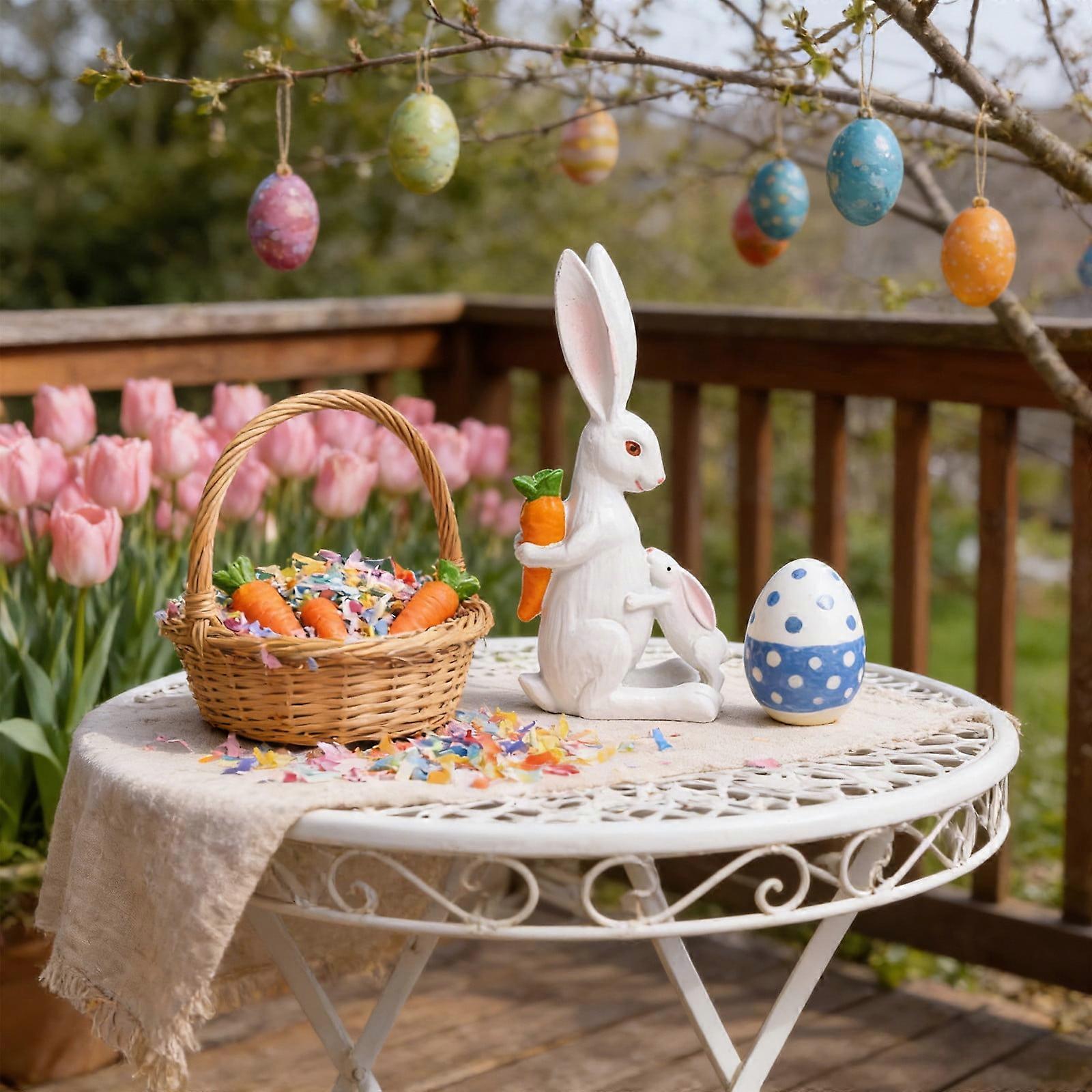 Easter Bunny With Carrot Resin Ornament Features: Material: Resin Color:Multicolor Product Size:14.7x6x4.3cm/5.7x2.3x1.6 in Packaging Size:18x8x7cm/7x3.1x2.7 in Weight:109g/0.24lb Gross Weight:109g/0.24lb Product Description: About the product: You will get 1 Easter Bunny with Carrot Resin Ornament. Product Material: This Easter Bunny with Carrot Resin Ornament pendants is made of high grade Resin, with clear patterns. Product Applicability: This Easter Bunny with Carrot Resin Ornament decoration is suitable for decorating Easter Day parties. Our Easter Bunny with Carrot Resin Ornament is a suitable gift for families. Easily to store: After the celebration, just put the ornament away for convenient storage. Easily to install: Whether you display it alone or as part of a wall display, it can easily mingle into various home styles and environments. Package Content: 1 x Easter Bunny with Carrot Resin Ornament 1. Charming Hand-Painted Design: This adorable Easter ornament features a meticulously hand-painted bunny holding a vibrant carrot, crafted with multicolor details that capture the joyful spirit of spring. 2. Durable & High-Quality Resin: Made from premium, durable resin, this festive figurine is built to last, ensuring it remains a cherished part of your holiday decor for many Easters to come. 3. Perfect Tabletop or Shelf Display: With its compact 5.7-inch size, this versatile ornament is ideal for decorating mantels, shelves, desks, or as a festive centerpiece for your Easter celebrations. 4. Thoughtful Ready-to-Gift Present: Expertly packaged and designed for gifting, this delightful bunny figurine makes a perfect Easter gift for family, friends, teachers, or neighbors. 5. Easy to Style & Store: This lightweight decoration fits seamlessly into any home style and is easy to store after the holiday, making it a convenient and reusable addition to your seasonal decor.