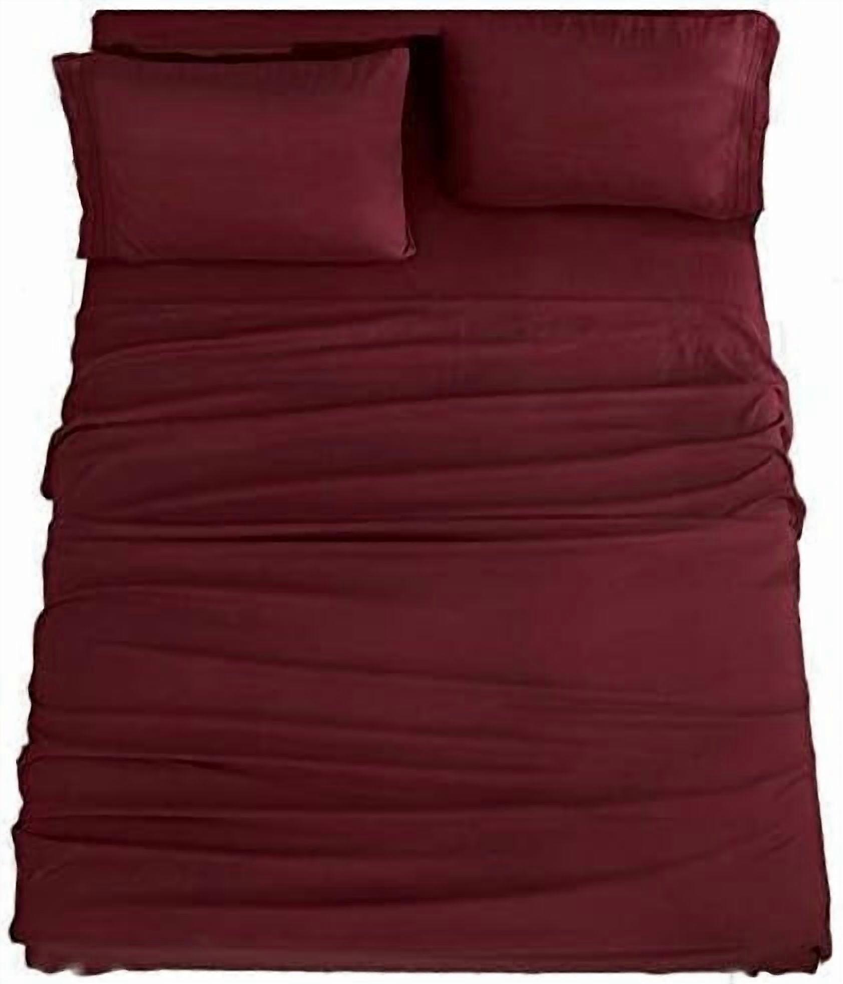 Super Soft Microfiber Bed Sheet Set, 1800 TC, 16" Deep Pocket, Wrinkle & Hypoallergenic – 4-Pc, Burgundy, Cal King