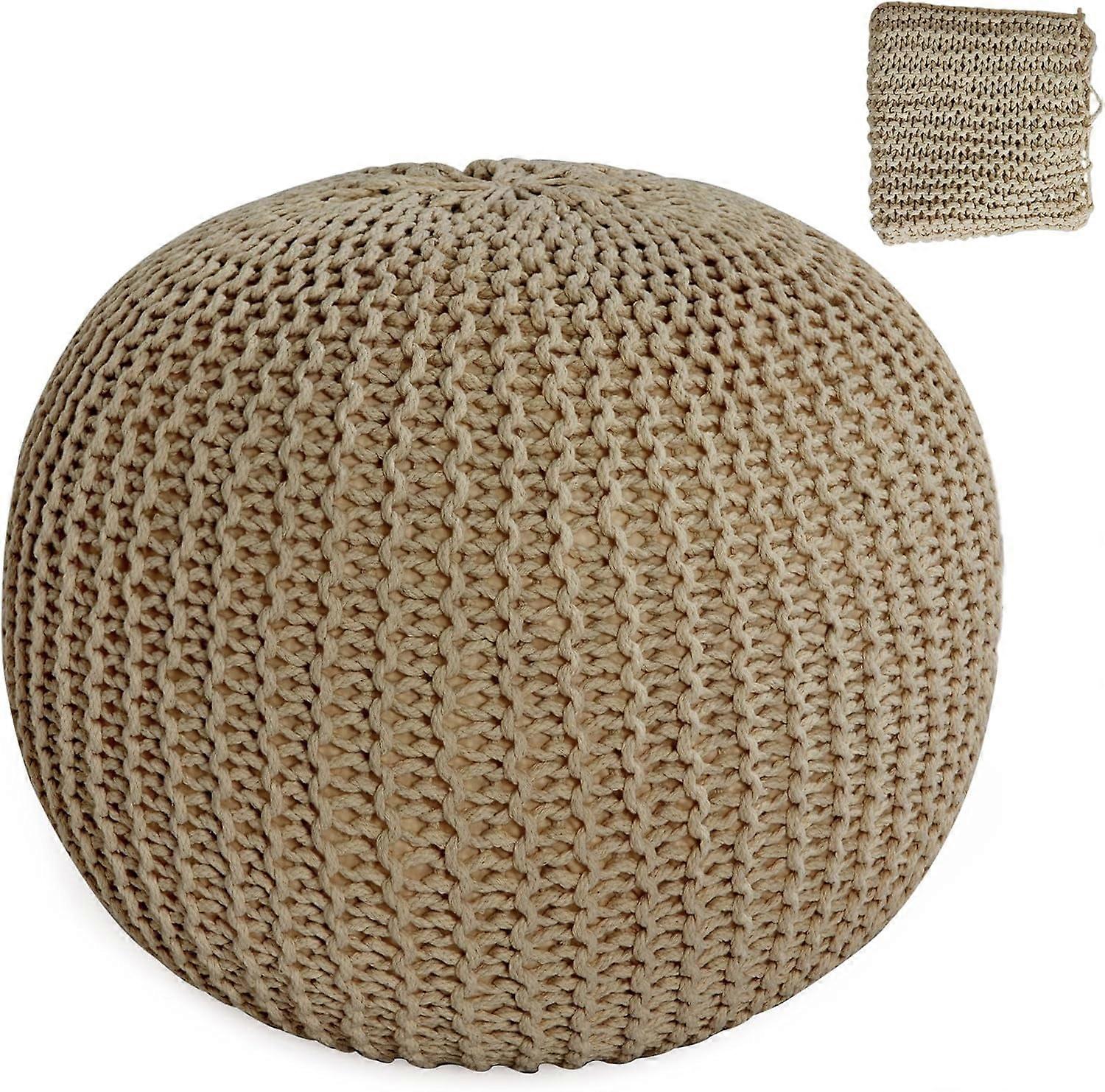 HOMBYS Knitted Cotton Ottoman Pouf Cover, Round Foot Stool Cover Only (No Filler), Khaki – Compatible with Standard Poufs