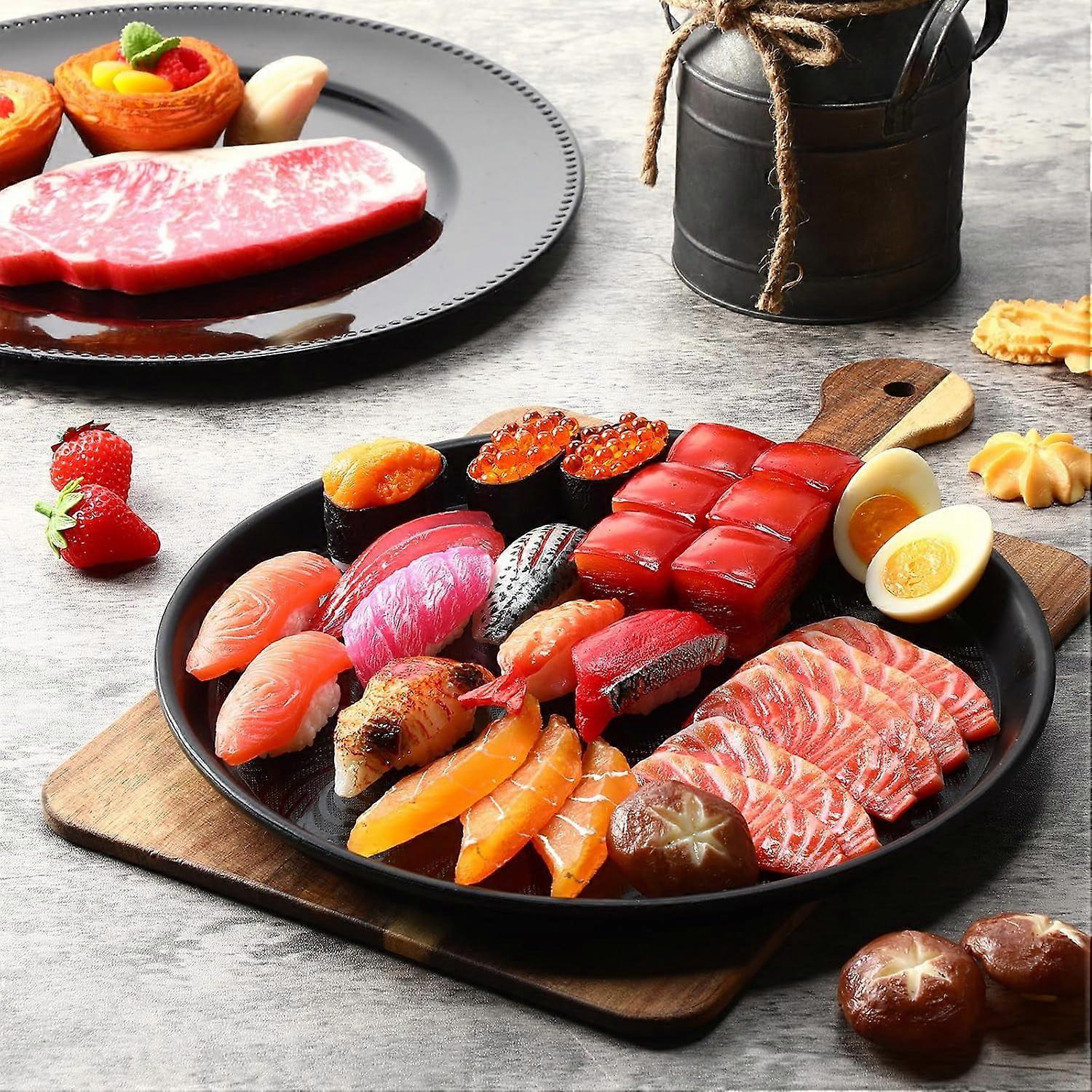 8 Pcs 14" Round Non-Slip Black Plastic Serving Trays for Restaurant, Bar, Café, Halloween Party – Compatible with Standard Service Carts
