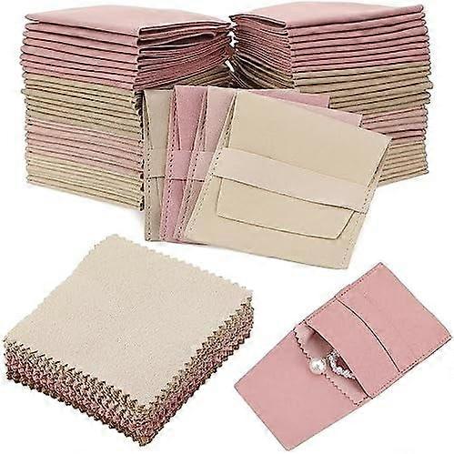 120 Pcs Microfiber Jewelry Pouch 8x8cm Packaging Bag Luxury Gift Fixed Strap Envelope Style Packaging with Cleaning Cloth(Fresh Color)