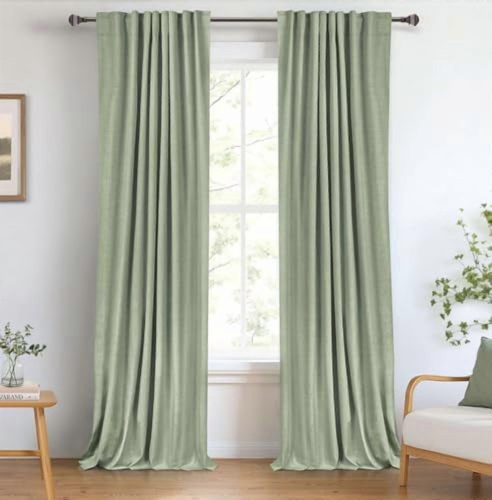 Linen Blackout Curtains 50"x96", Back Tab/Rod Pocket, Thermal Insulated, 2 Panels, Sage