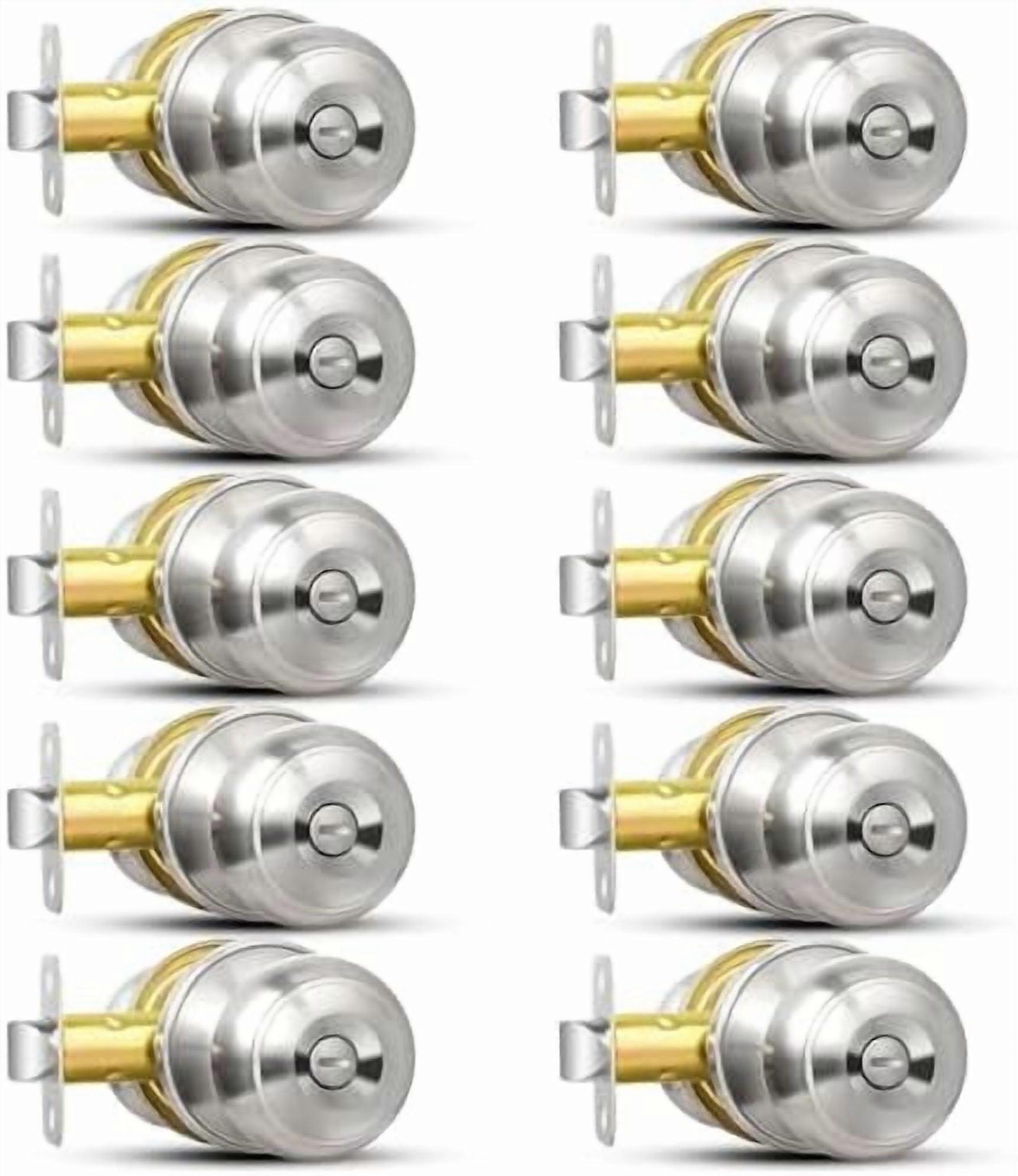 10-Pack Brushed Nickel Privacy Door Knobs, Keyless Locking for Bedroom/Bathroom, Modern Interior/Exterior Hardware