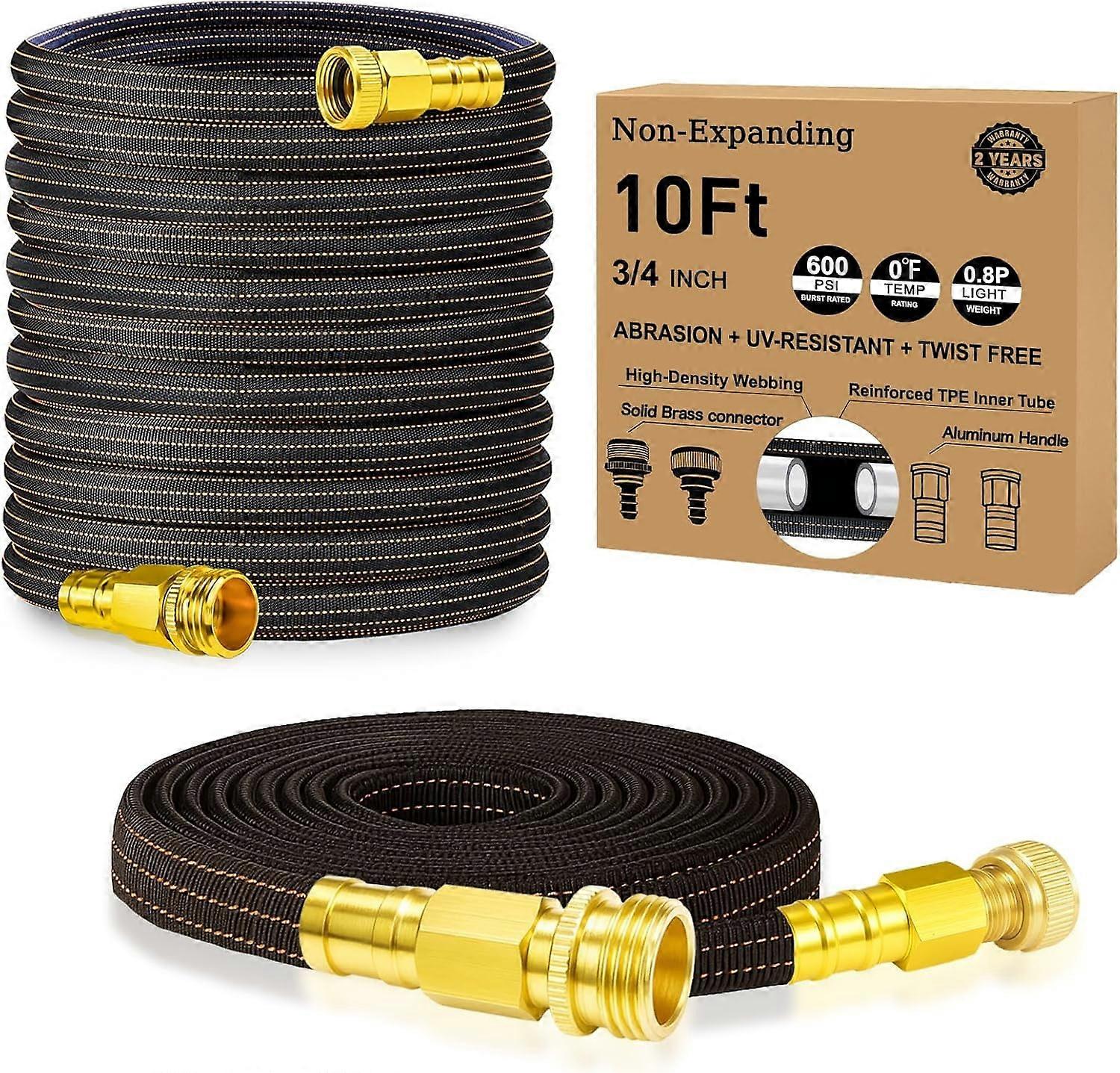 10FT Lightweight Kink-Free Garden Hose with Brass Fittings, Collapsible & High-Pressure Flat Hose for RV, Boat, Car Wash, Garden – Orange/Black