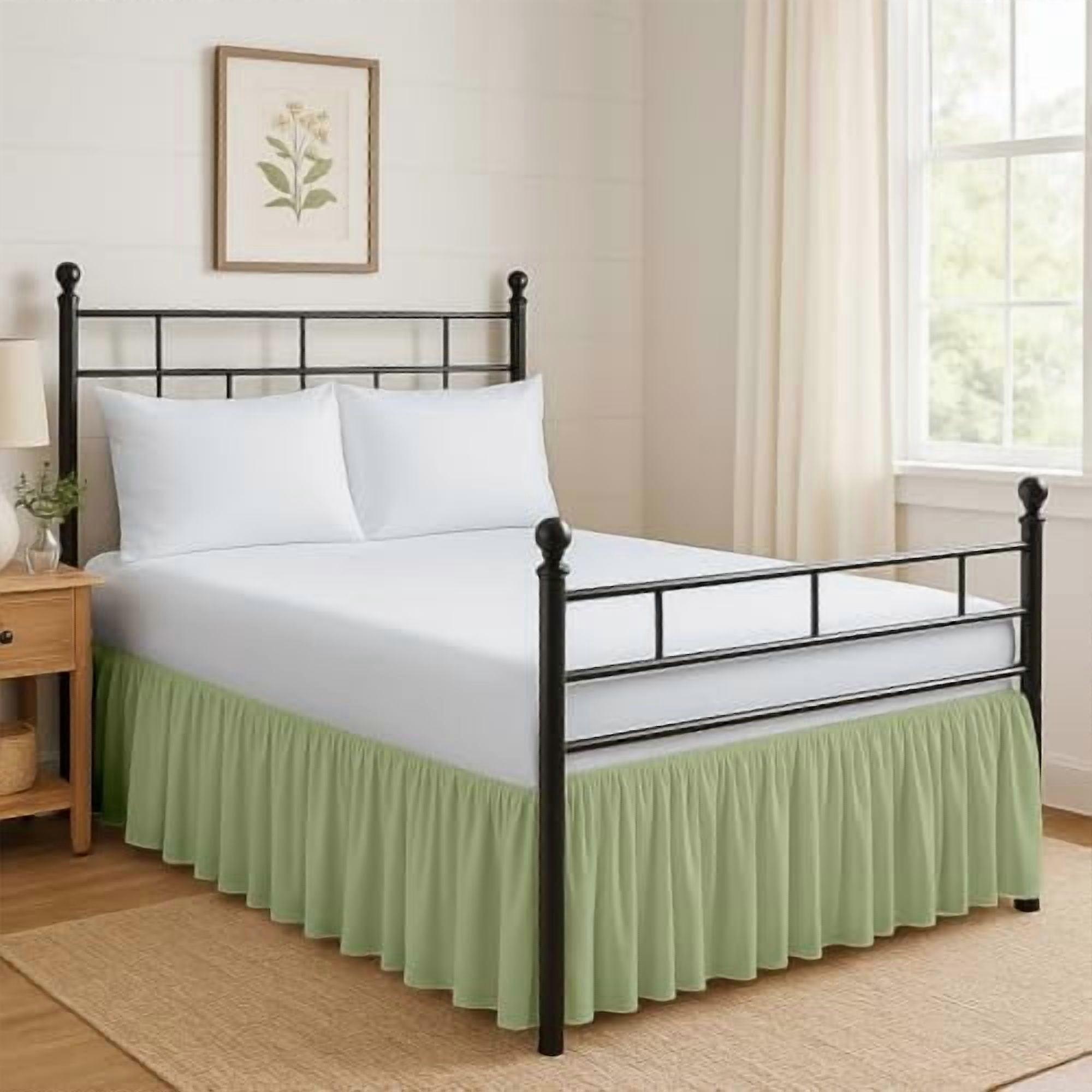 Ruffled Bed Skirt with Split Corners & Platform, Hotel-Quality Wrinkle-Free Microfiber, Up to 28" Drop, King, Sage