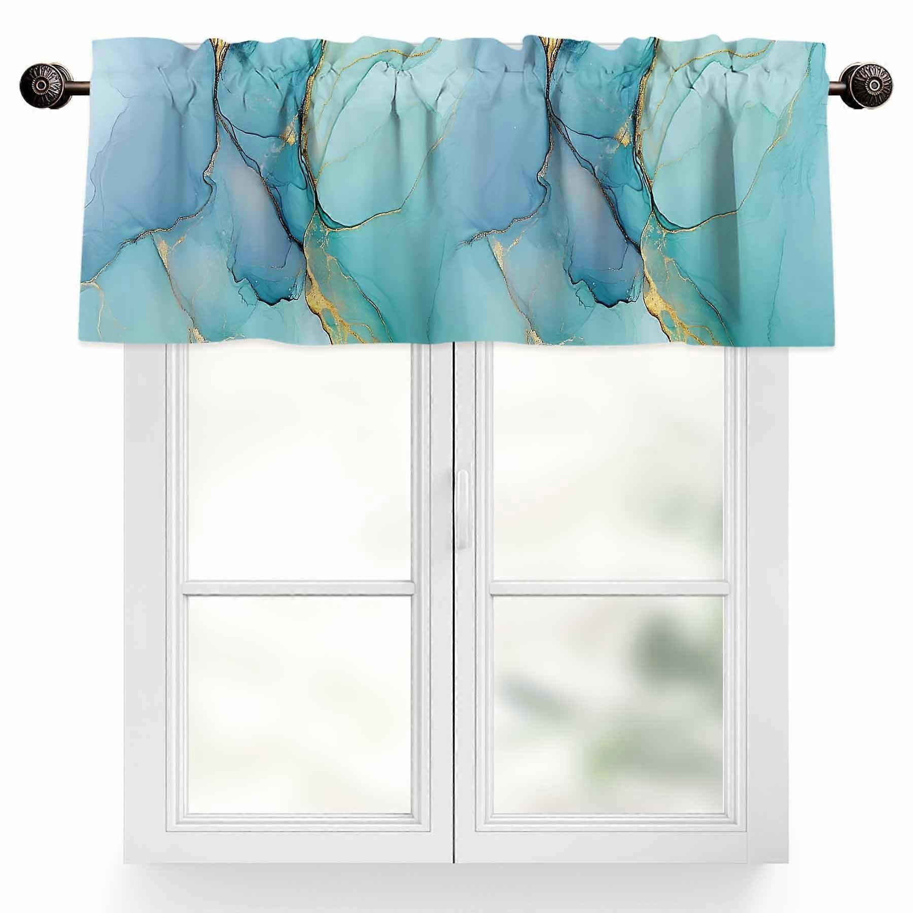 Teal Green Valance 60x18in, Blue Marble Abstract Texture, Rod Pocket, Light Filtering, Compatible with Standard Rods