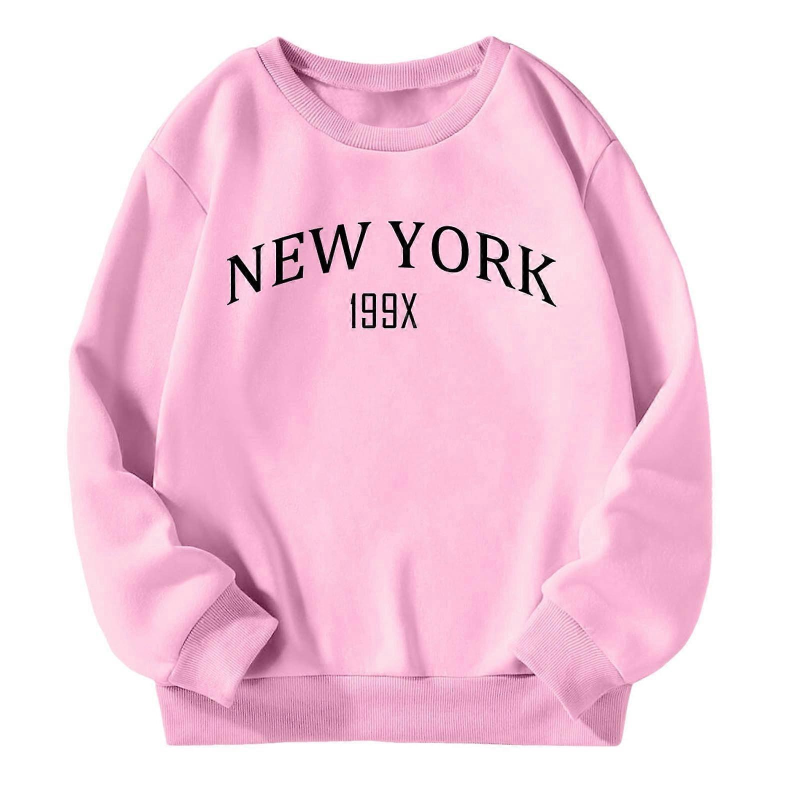 Girls Boys Hoodies Fall Winter Letter Printed Long Sleeve Round Neck Pullover Hoodless Sweatshirt Child Trendy Sport Sweatshirt,Pink,8-9 Years