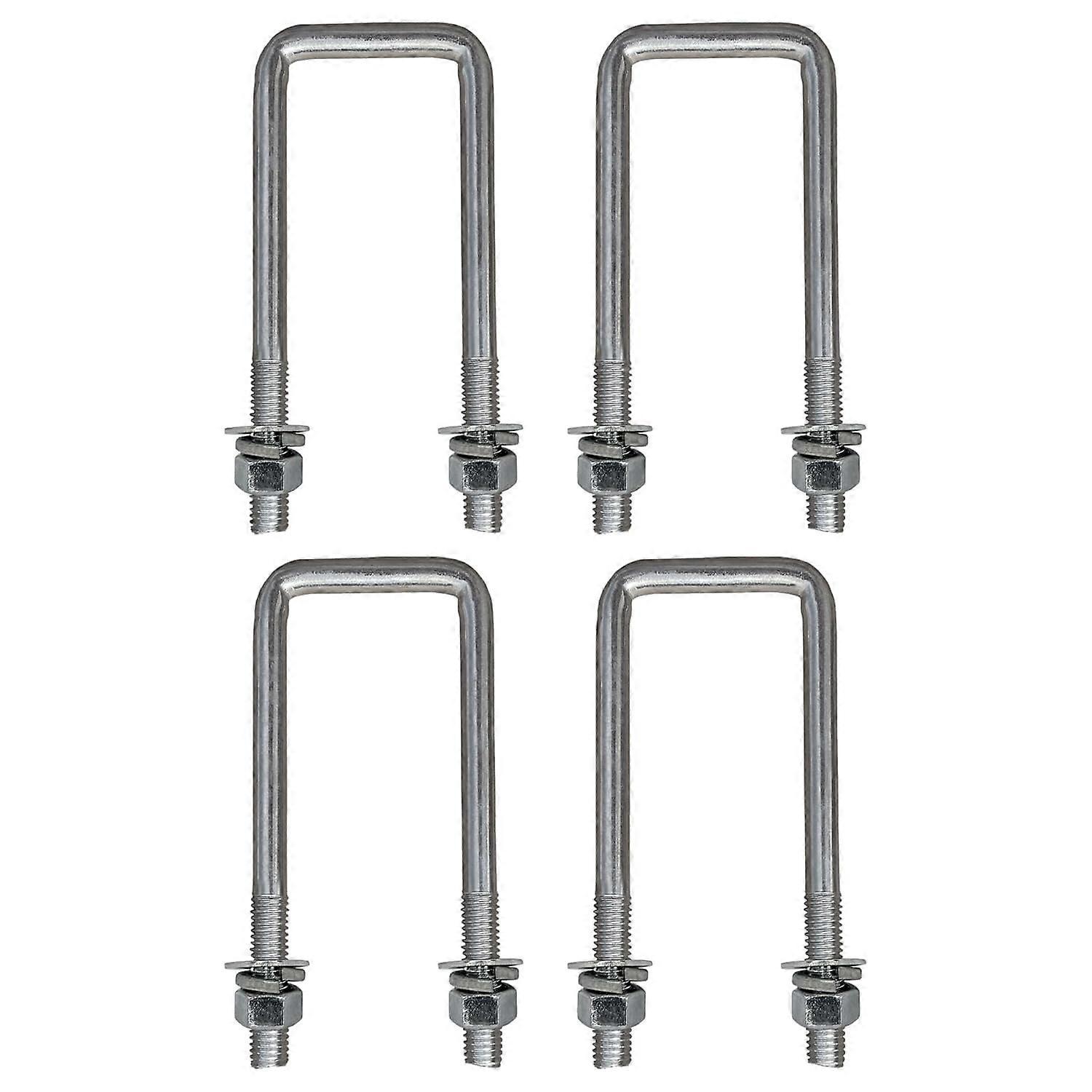 Square U Bolts with Hardware for Boat Trailer, Electro-Galvanized Steel, 1/2" Diameter x 2-1/8" x 6-5/16" for 2x4 Beam (4 Pack)