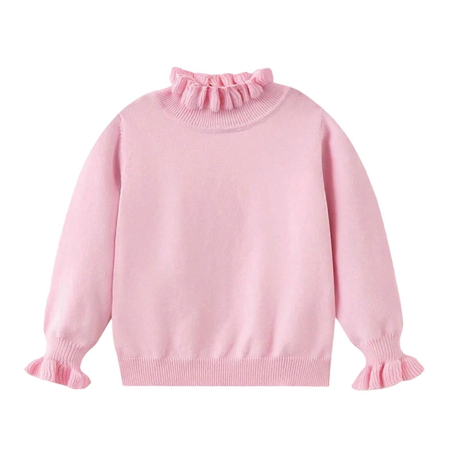 Children's Underlayer Sweater, 100% Cotton Yarn Lace Collar Pullover Sweater for Girls (3-8 Years),130,Pink