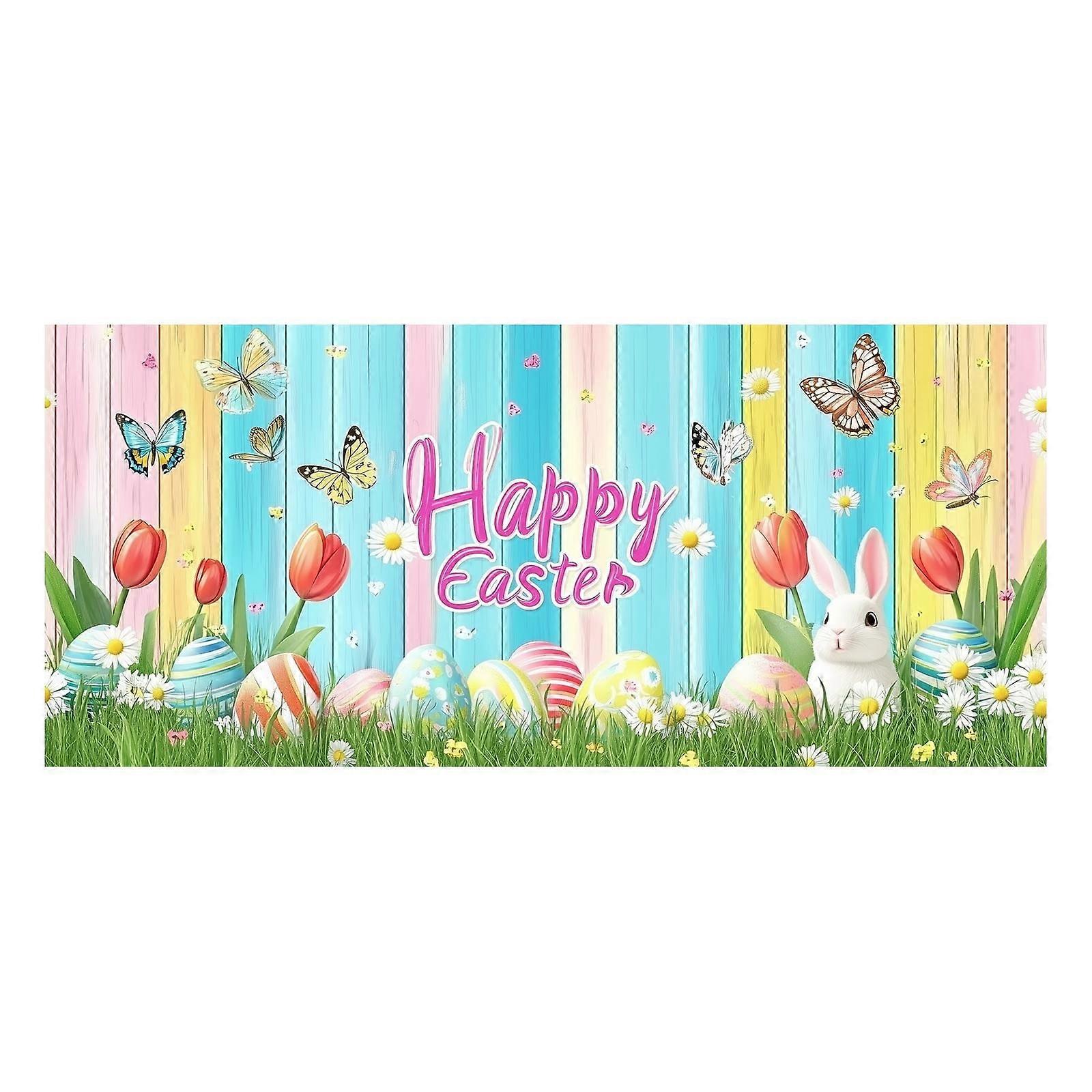 Easter Garage Door Decoration Happy Easter Garage Door Banner Large Easter Egg Spring Flower Cover Background Decal for Outdoor Indoor Hanging Party Supplies Material: nylon Color: as the picture shows, (Due to the difference between different monitors, the picture may have slight color difference. please make sure you do not mind before ordering, Thank you!) Package weight: 220g Package size: 33x26x1.5cm,(Please allow 1-3mm error due to manual measurement. please make sure you do not mind before ordering.) Widely Usage:This Large Easter Photography Background Is A Nice Decoration For Easter Parties,also Recommended For Any Indoor And Outdoor Wall. It's A Great Easter Decoration For Garage Doors, Houses, Gardens, Churches, Parks And Other Areas. Which Will Bring You An Unforgettable Easter Memory To Use: There Are 4 Copper Holes Respectively In The Easter Wall Photo Props And The Package Comes With A White Rope That Can Be Cut At Will, It's To It To The Garage Door Or Install It Anywhere You, And No Worry About Blowing Quality Material: The Easter Egg Cover Background Is Made Of Thick Polyester Fabric With Printing, It's Seamless, Light Weight, Reliable And Durable, Not To Fade Or Break, Suitable For Indoor And Outdoor Use Large Easter Garage Door Banner :You Will Receive 1 Piece Of Easter Garage Door Cover Background And 4-10m White String,it Is Big Enough To Hang The Garage Door Or Indoor Wall Easter Design: The Spring Easter Garage Is Printed With "Happy Easter" Letters And Full Of Spring Easter, Such As Painted Eggs,, Flowers, Butterflies, And So, You Can Take Pictures With This Easter Decoration And Share With Your Friends And Neighbors