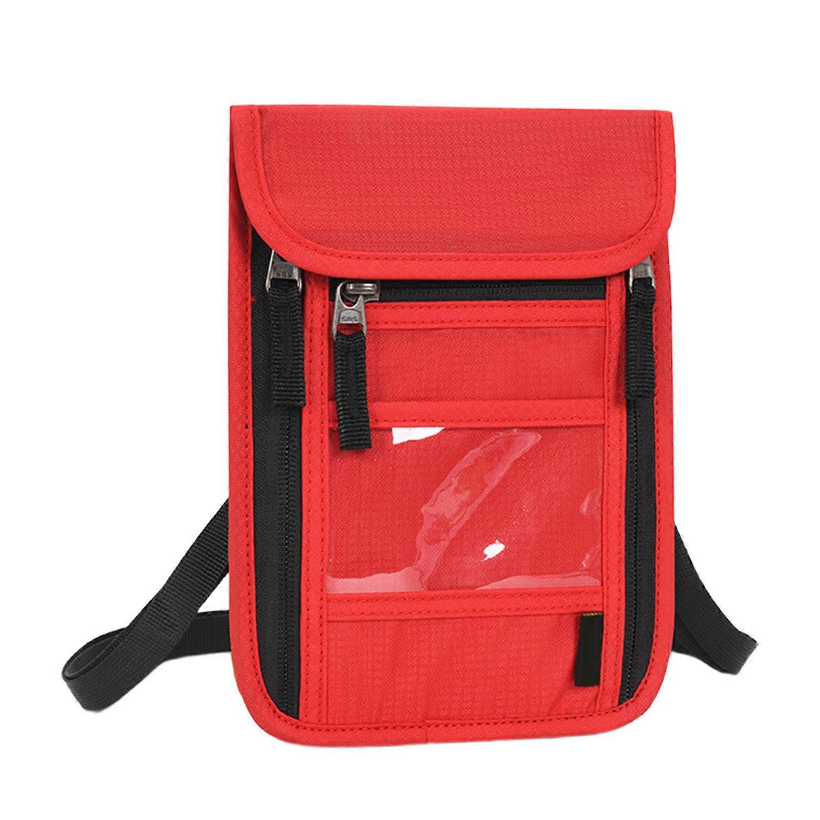 Waterproof Travel Card Wallet With Adjustable Strap Multi Layer Phone Holder Case For Trekking Hiking Mountaineering Red Color