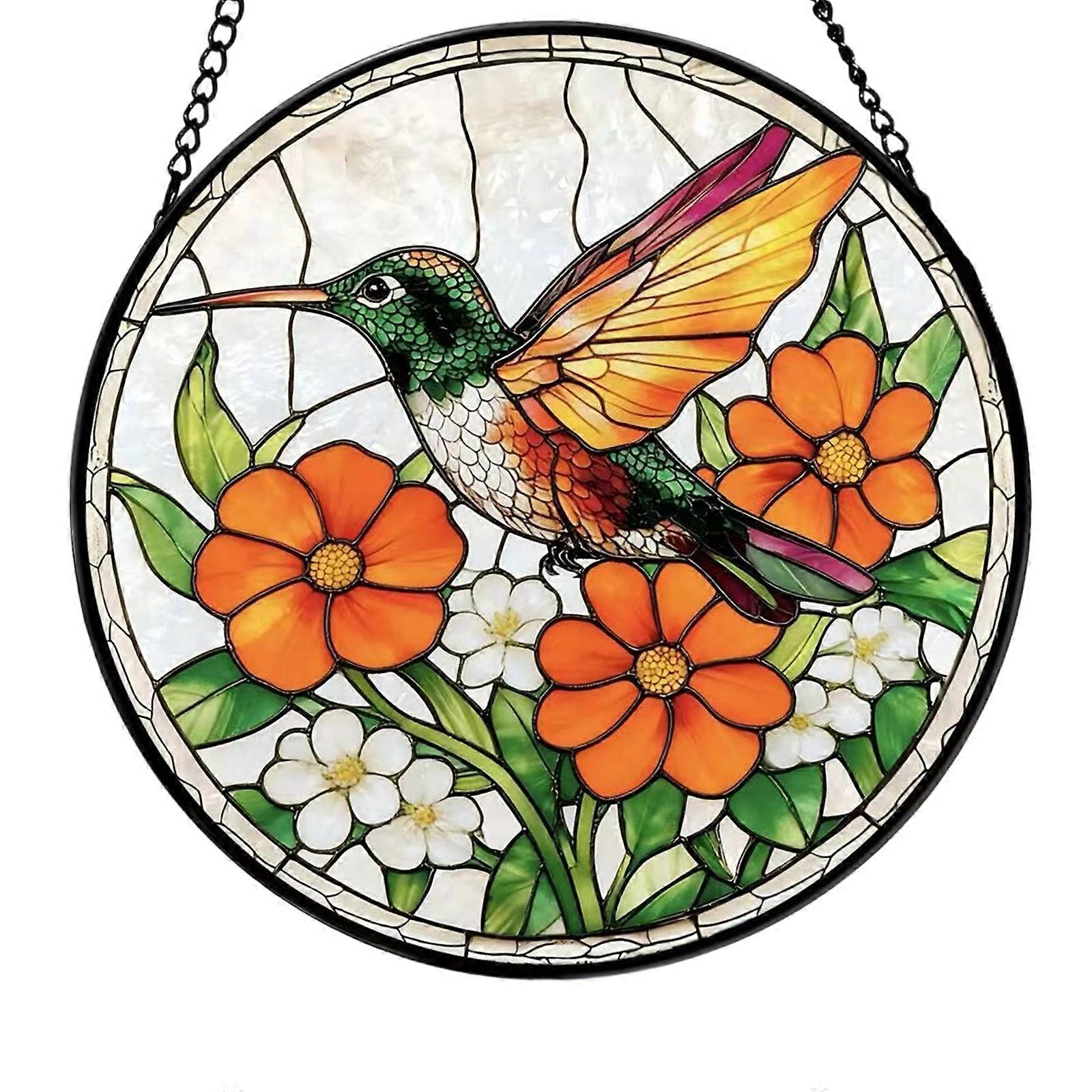 Flower Bird Pattern Stained Glass Sunlight Catcher Decoration for Women Men Birthday Valentines Day Anniversary Gift 38CM
