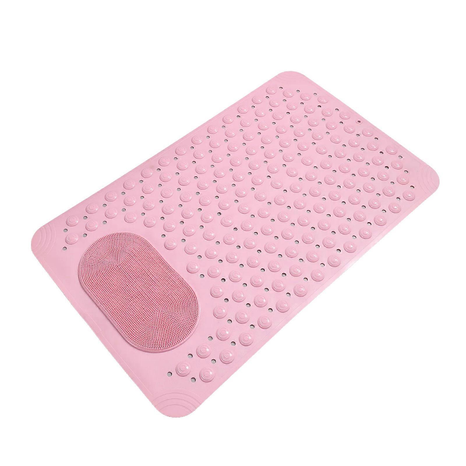 Wide Coverage Bath Mat Foot Scrubber With Suction Cups And Raised Massage Nodes For Stability 2 Pink