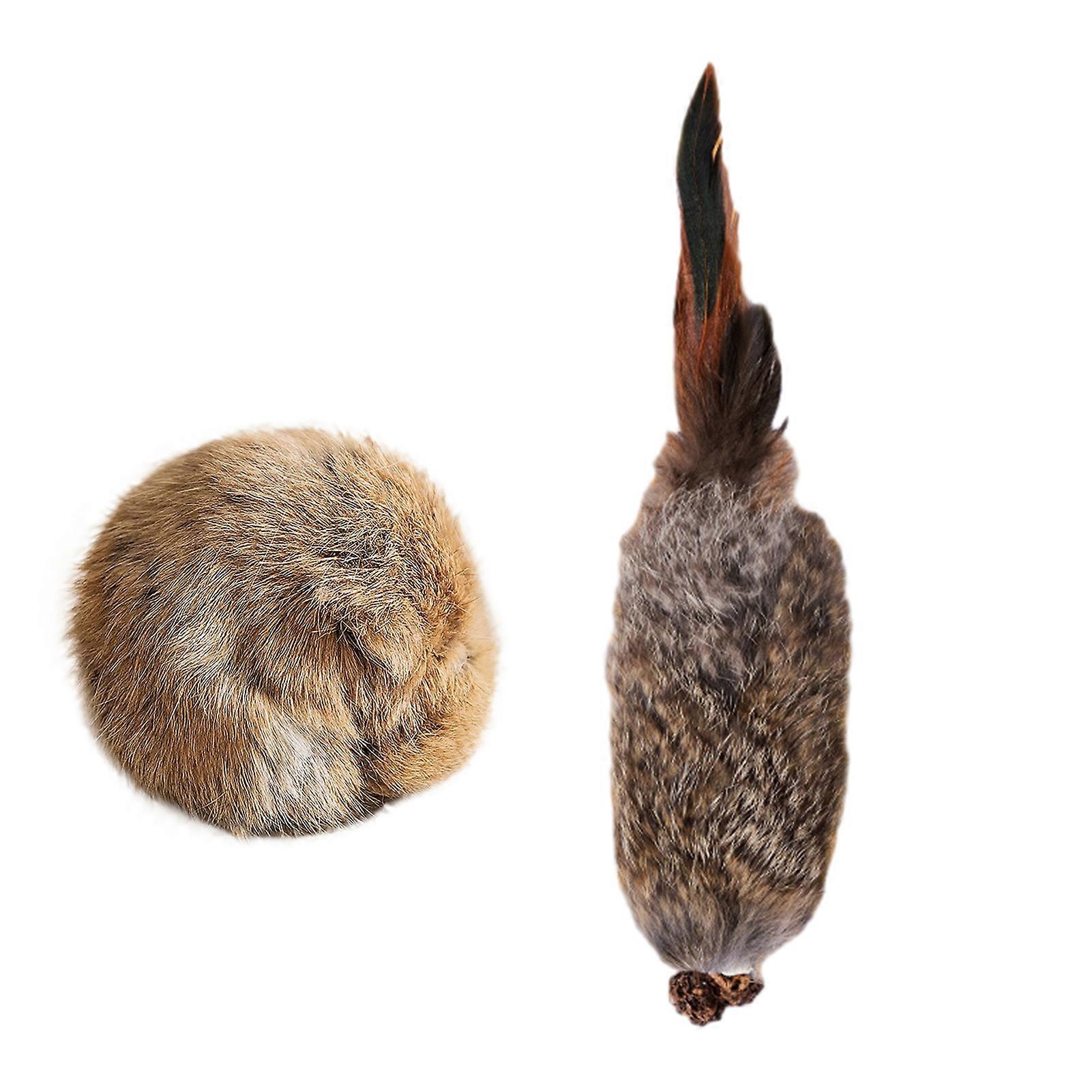2Pcs Furry Ball Cat Toys Faux Rabbit Fur Cat Kicker Toys Natural Gall Fruit Fluffy Bunny Kick Cat Toy for Indoor Kitten Hunting Chasing