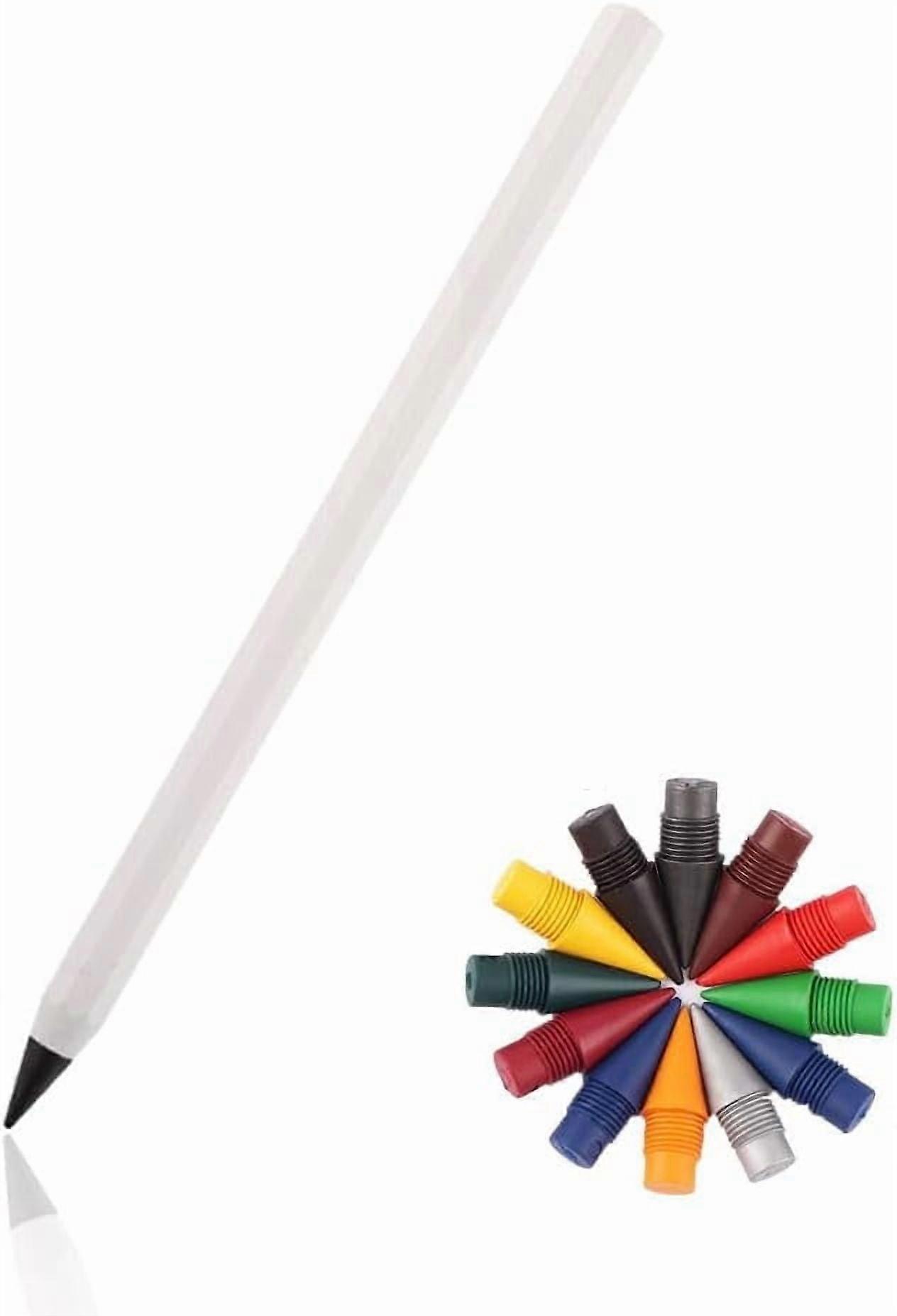Metal Alloy Pen, No Sharpening Needed, 12-Color Replaceable Nibs, Reusable (12pcs Refills, Blue)