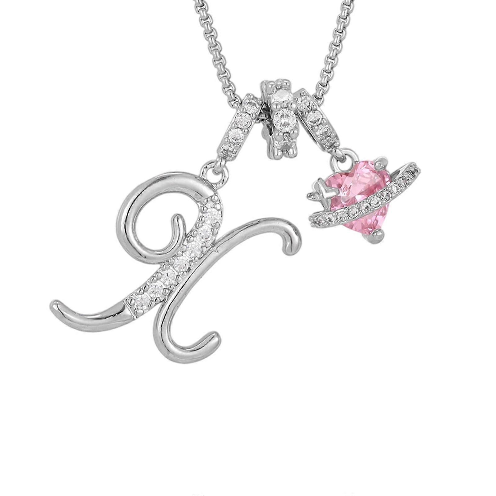 Pink Heart Diamond-Encrusted Initial Pendant Necklace (A-Z), Stackable Crystal Jewelry, Birthday Gift for Women – Compatible with Sterling Silver
