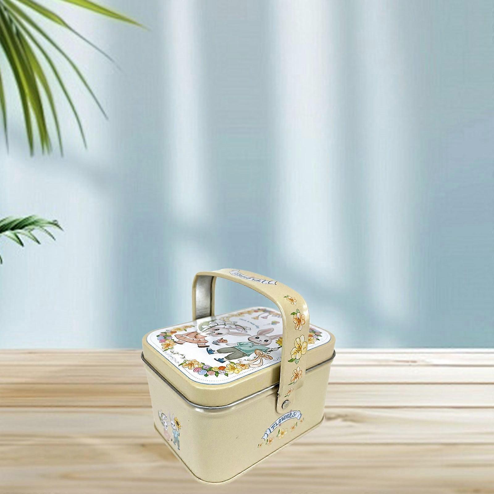 Handheld Vintage Cookie Tin with Lid – Retro Candy Container & Cookie Jar for Wedding, Easter, Christmas, Holidays Decor