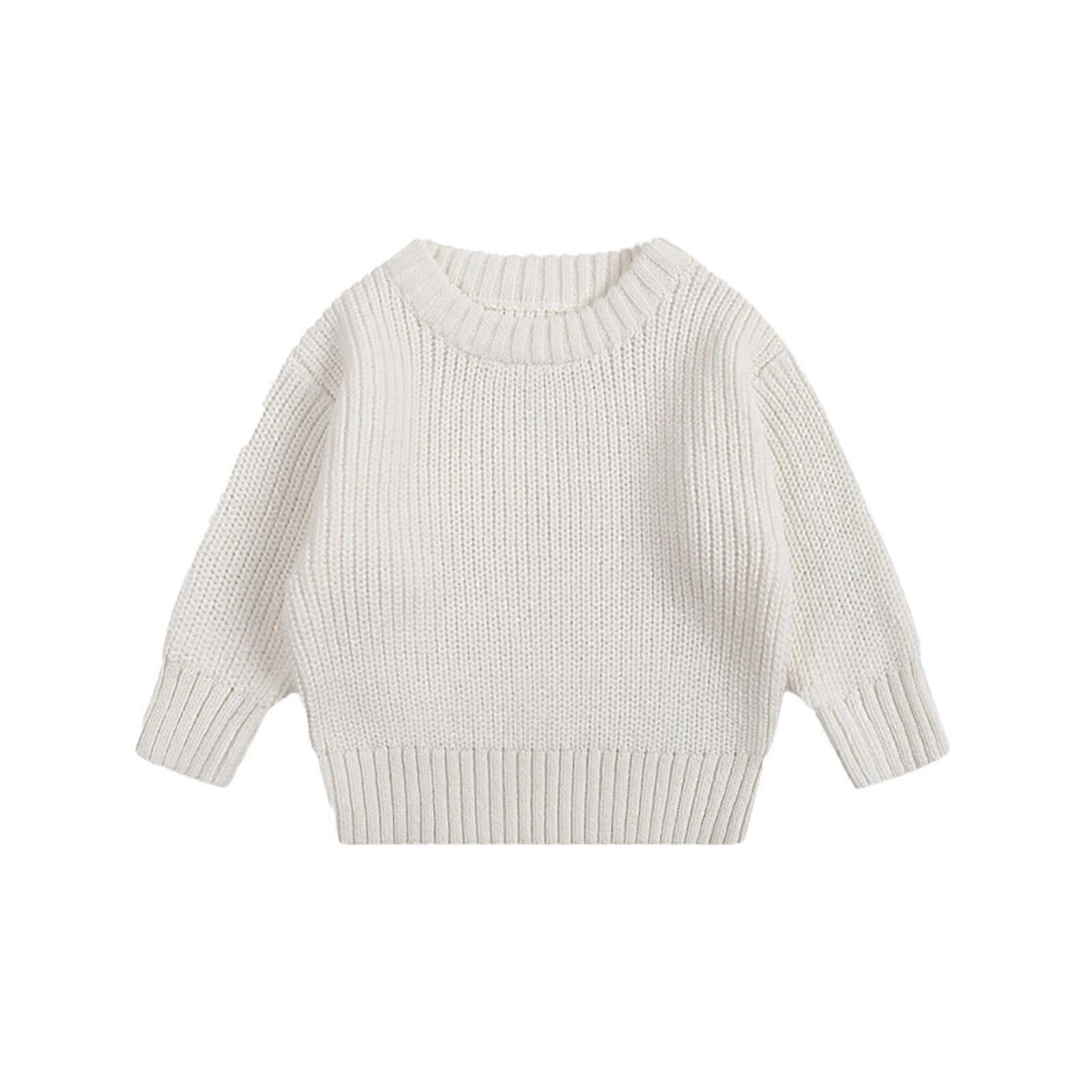 Knitted Sweater Round Neck Long Sleeve White Pullover Sweatshirt Warm Fall Winter Clothes Toddler Sweater 5-6 Years
