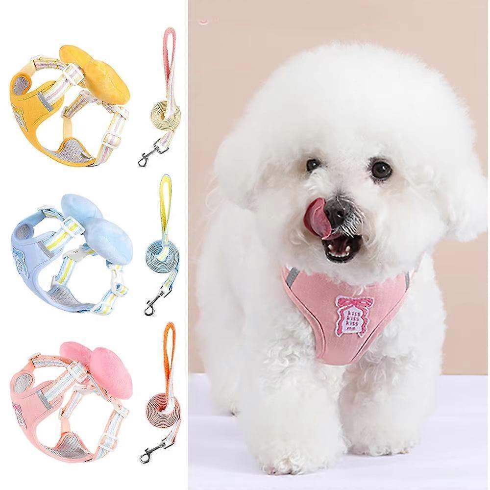 Bowknot Dog Leash Summer Cool Dog Chest Backpack Outdoor Cute Dog Walking Rope Chest Backpack(Blue-Xl) Mc
