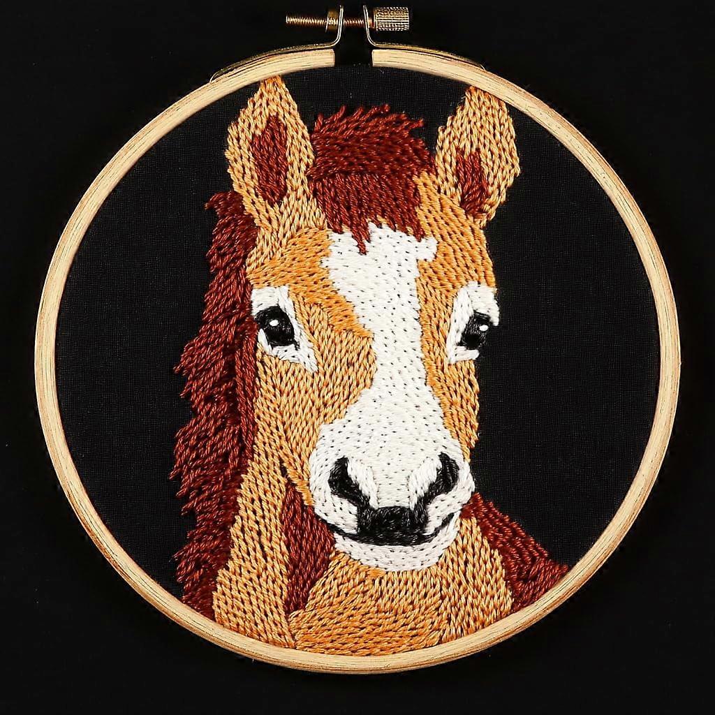Cute Baby Horse Punch Needle Kit for Beginners – DIY Yarn Embroidery Set with Printed Pattern & Hoop (20x20cm), Compatible with Standard Punch