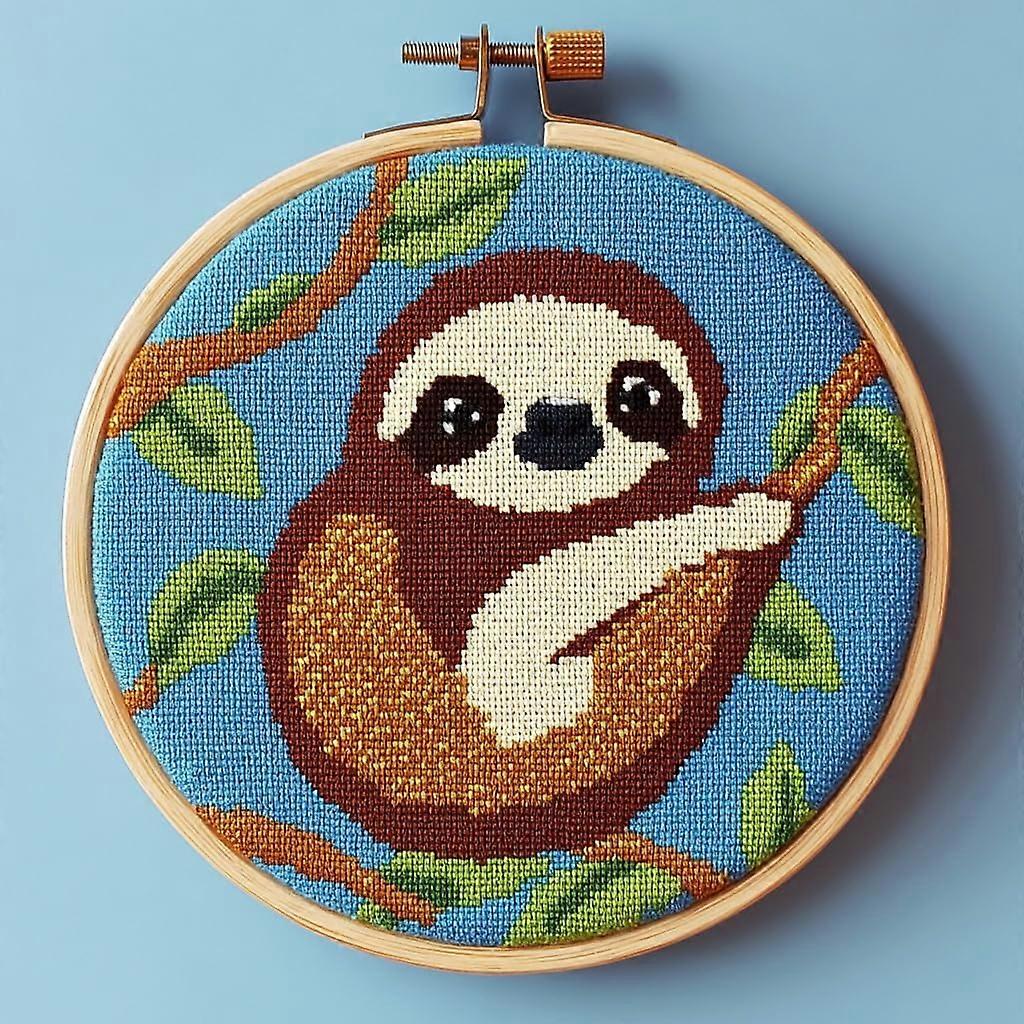 DIY Punch Needle Kit: Cute Sloth Pattern, Easy for Beginners, Includes Hoop & Printed Design – 20x20cm, Compatible with Standard Tools