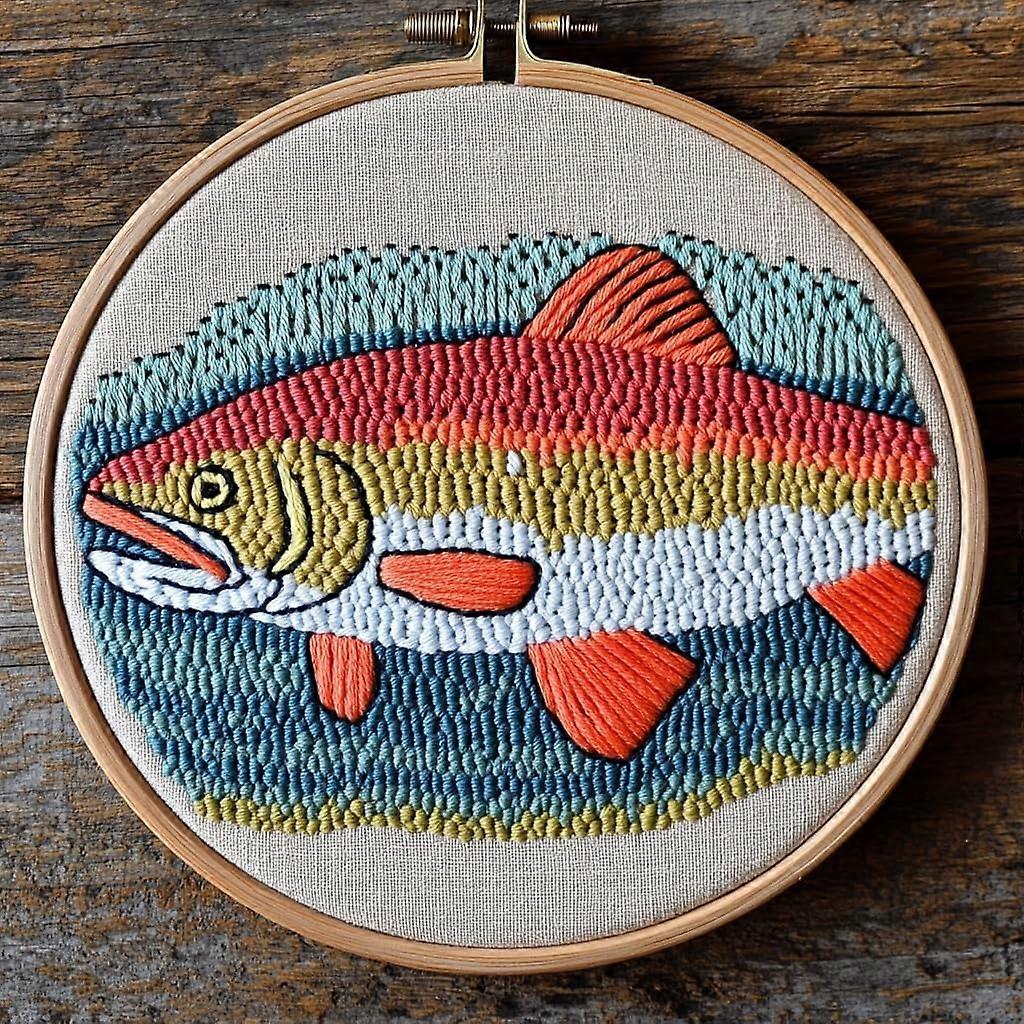 DIY Punch Needle Kits Trout Fish Easy for Beginners Punch Needle Embroidery Set with Hoop Stamped Pattern for Craft lovers and Home Decor-1