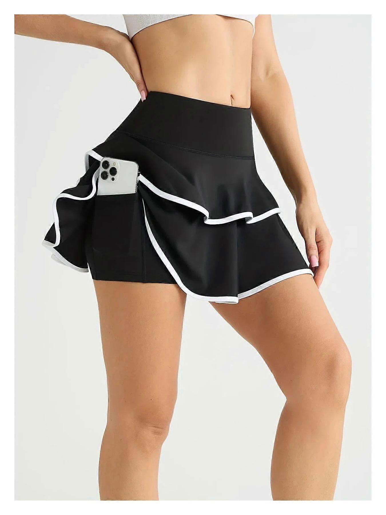 Women's Color-blocked Thin-edge Yoga Tennis Skorts High Waist With Pockets Fitness Gym Running Yoga Skorts Skirts