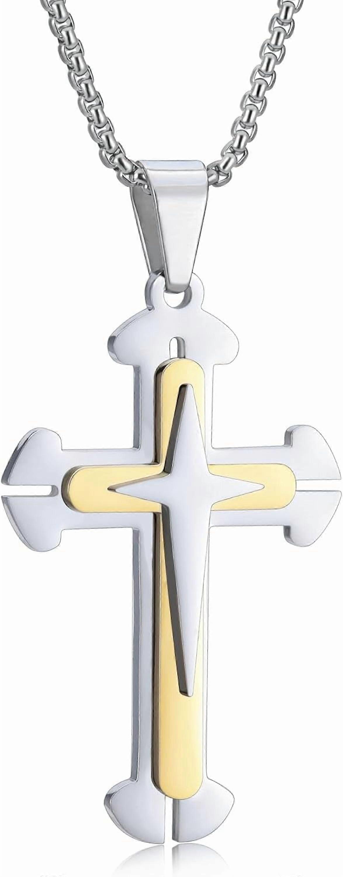 Cross Necklace for Men, Stainless Steel Chain, Silver Toned Pendant, Christian Religious Jewelry