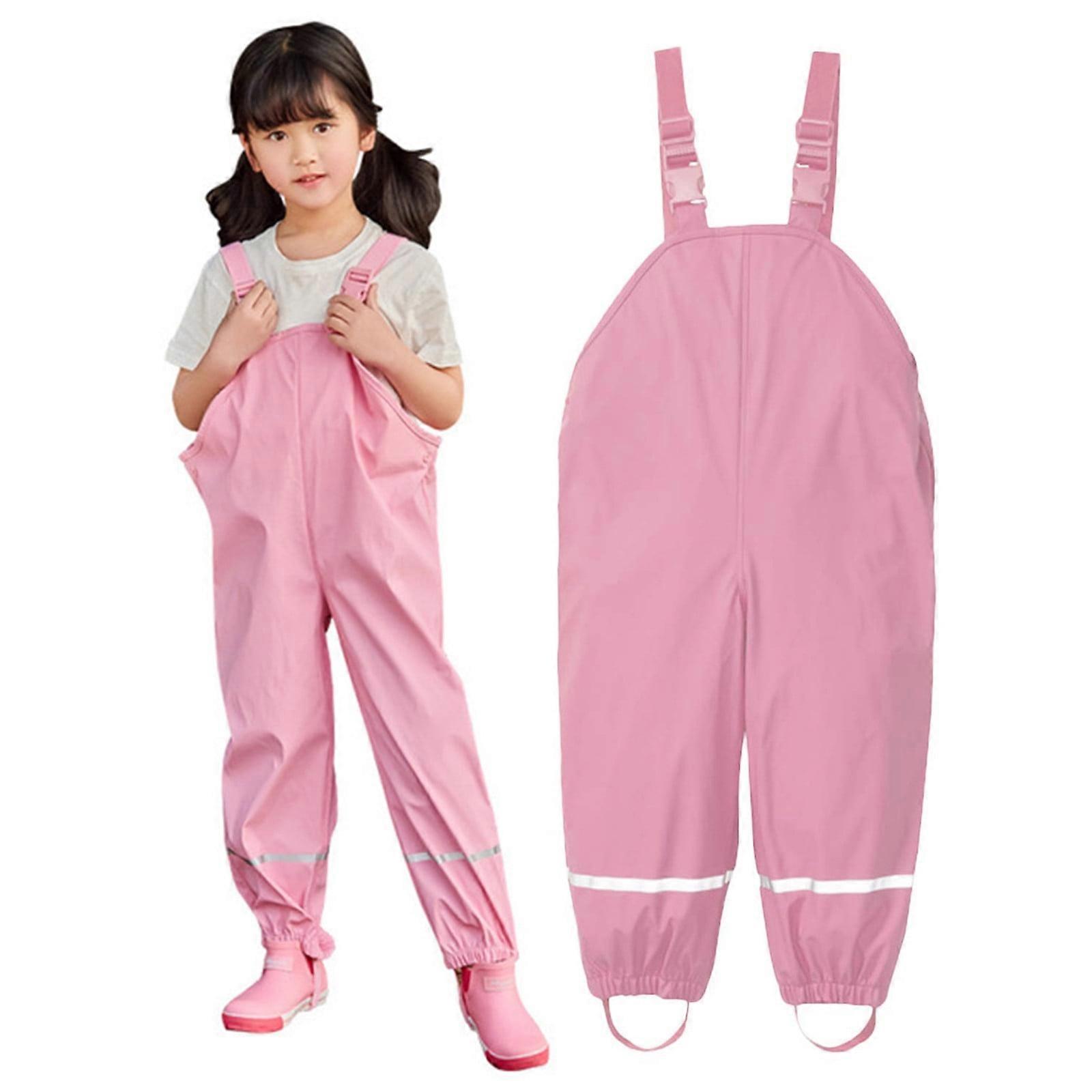Toddler Kids Boy Girl Rain Dungarees Waterproof Mud Jumpsuit with Lining Protective Play Clothes for Wet Weather,Z01 Pink,4-5 Years
