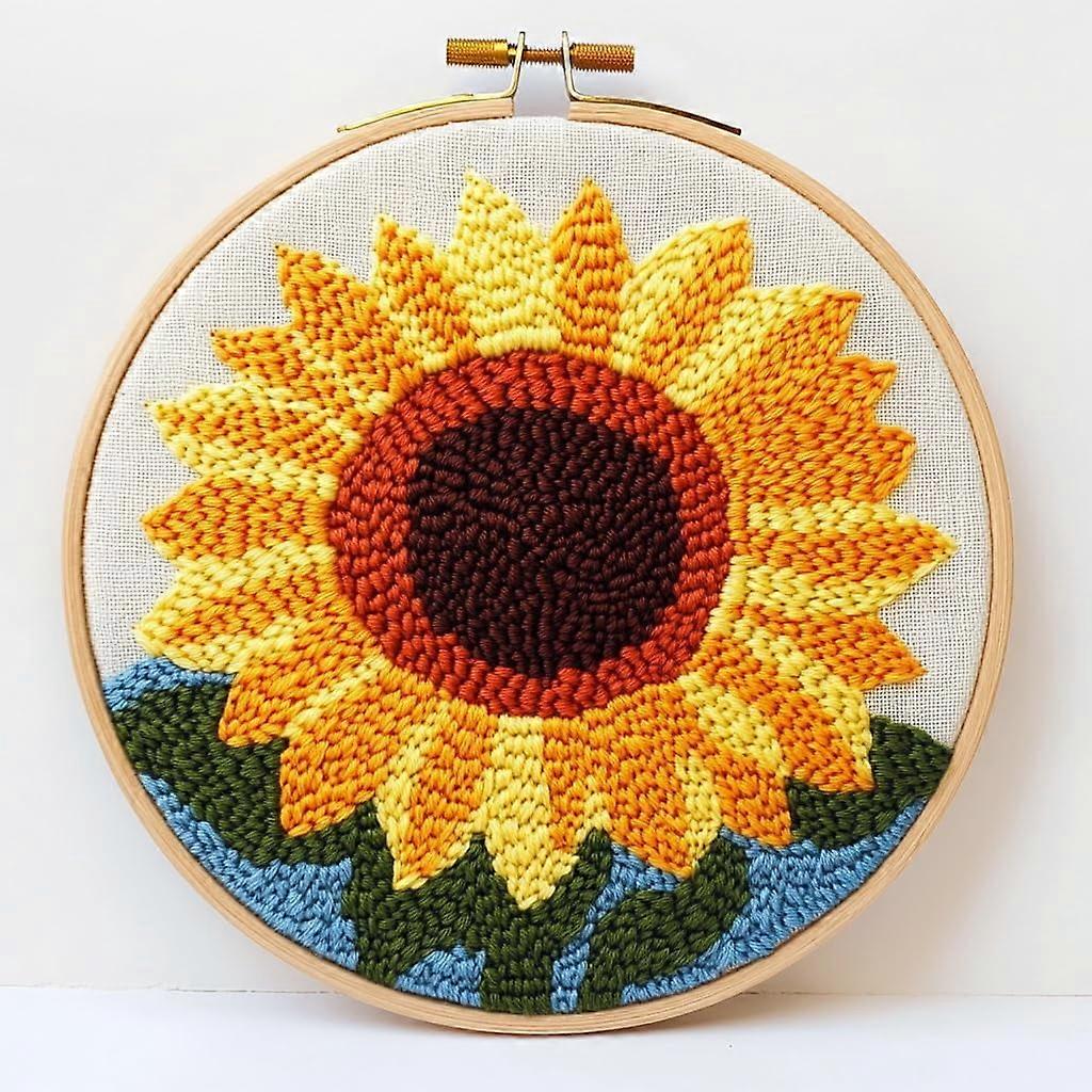 Abstract Sunflower Punch Needle Kit for Beginners – DIY Yarn Embroidery Set with Printed Pattern, Hoop & 20x20cm Canvas (3 pcs), compatible with