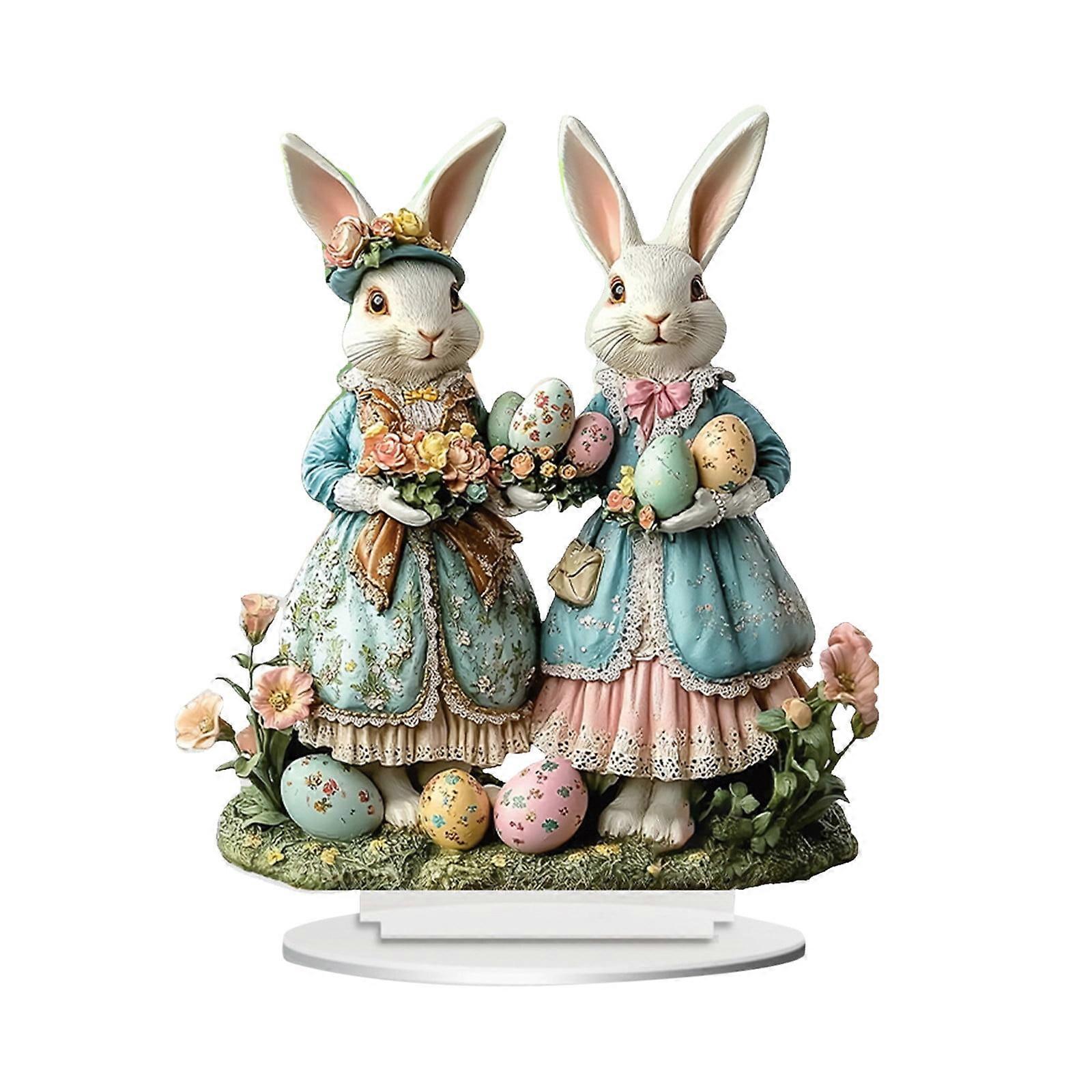 1PC 8" Easter Rabbit Egg Acrylic Desk Ornament – Flat 2D Rabbit Egg Statue for Tabletop & Home Decoration, Compatible with Easter Themes