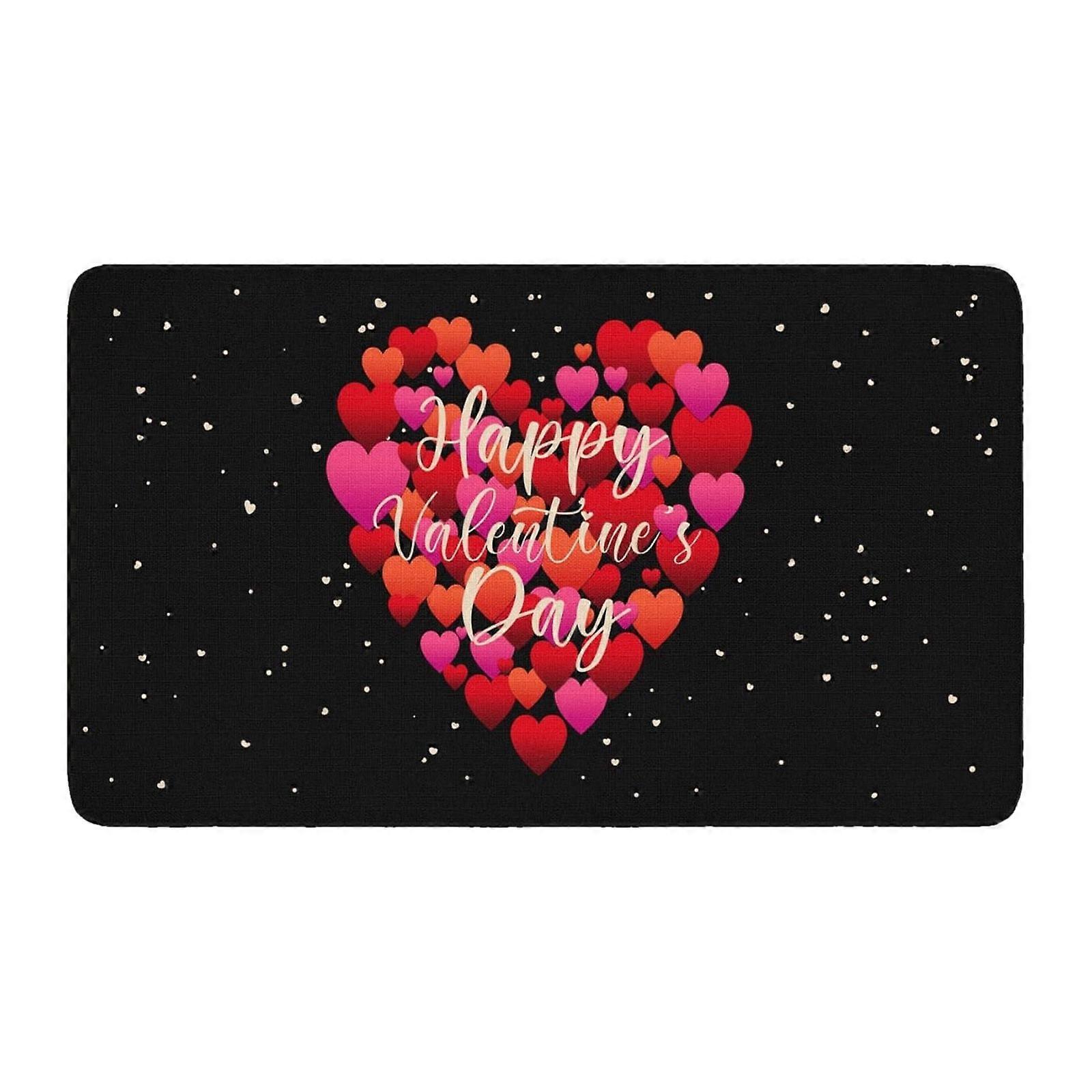 Valentine's Day Door Mat – Red Heart Print, Soft Absorbent Floor Rug for Entrance, Laundry Room (23.6 x 15.7 in)