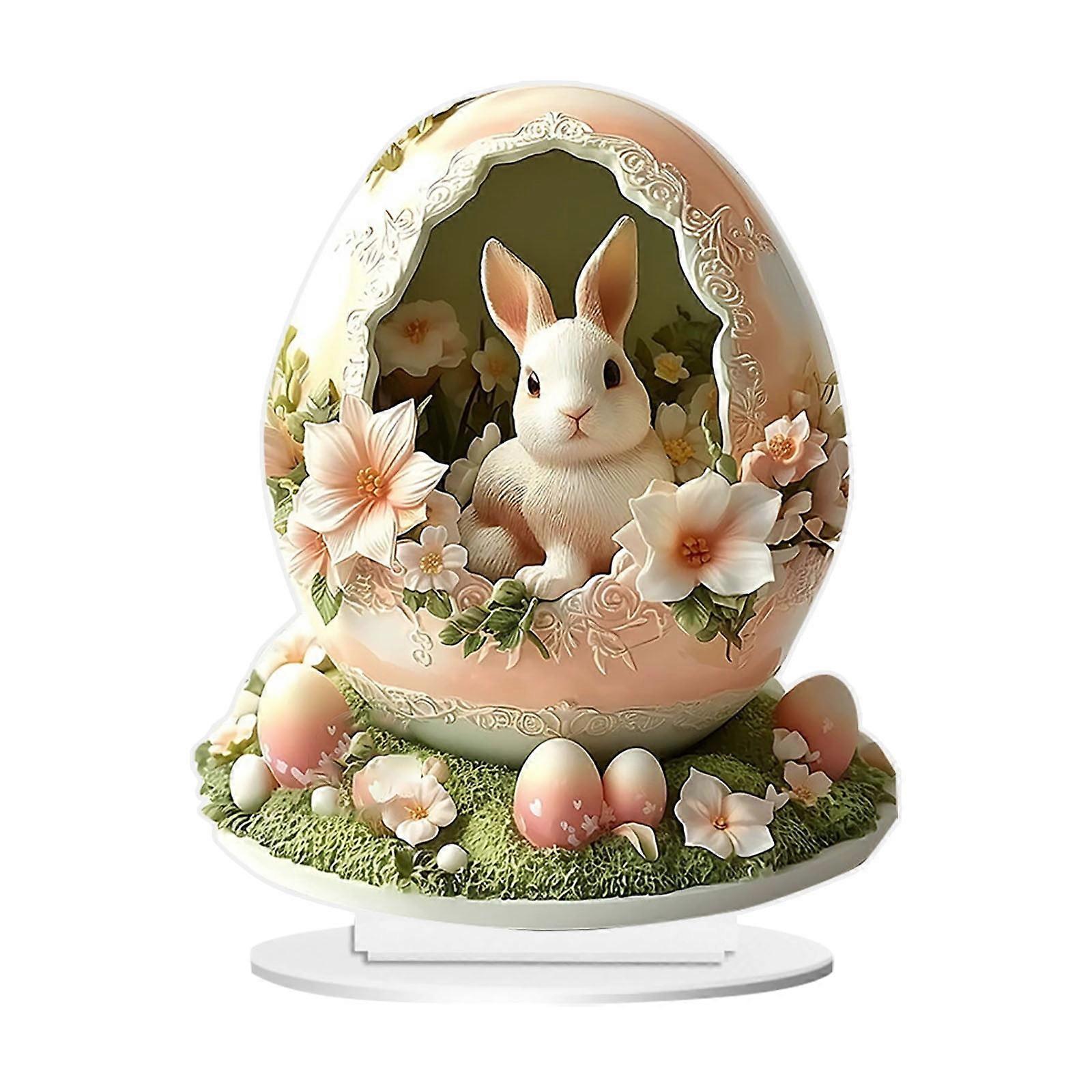 1PC 8in Easter Rabbit Egg Acrylic Desk Decor – Happy Easter Ornament for Tabletop & Home, Compatible with Easter Themes