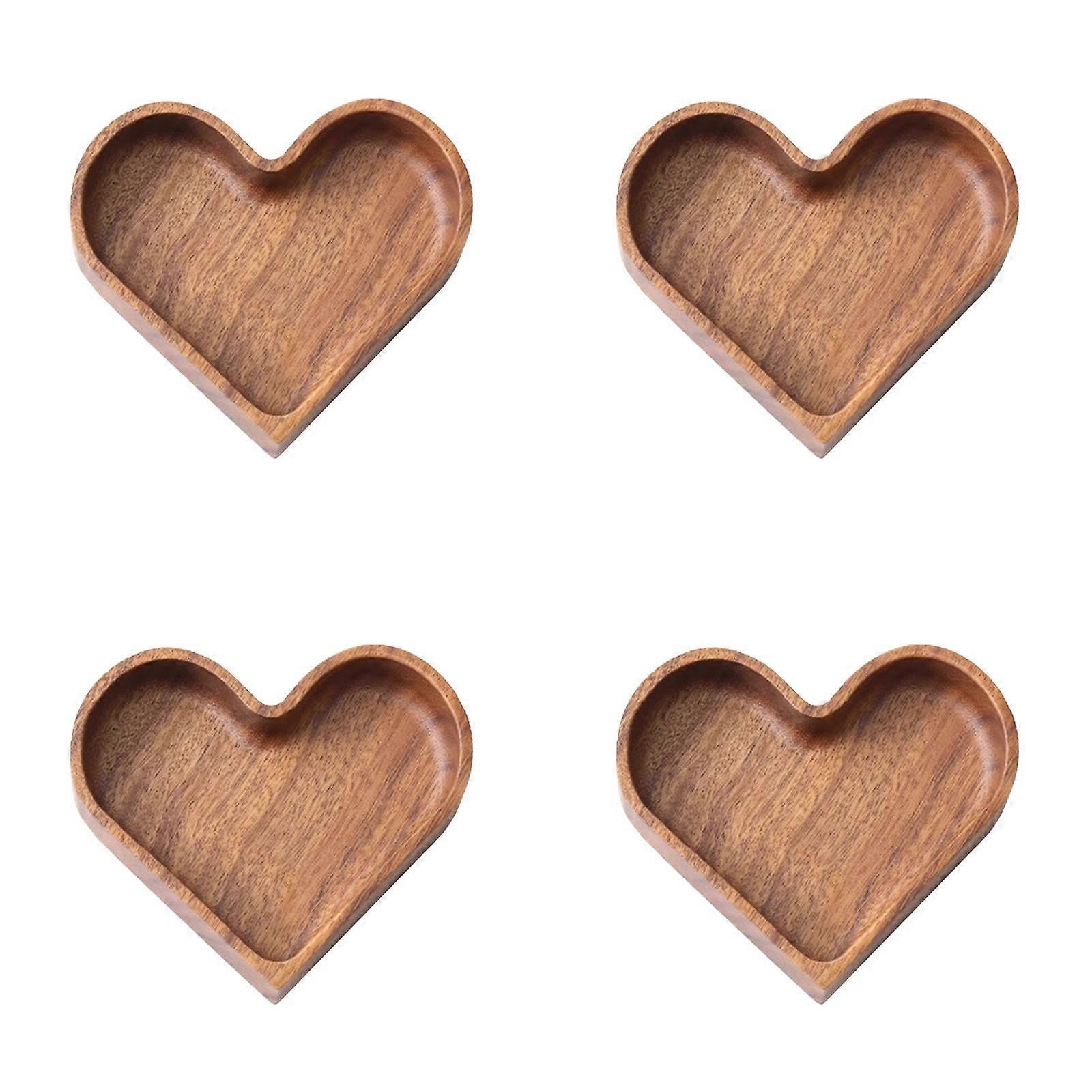 Double Heart Shaped Charcuterie Board Wood Serving Platters and Trays Side Dish Serving Trays,Mother Day Valentine's Day Table Decorations Brown 4PCS