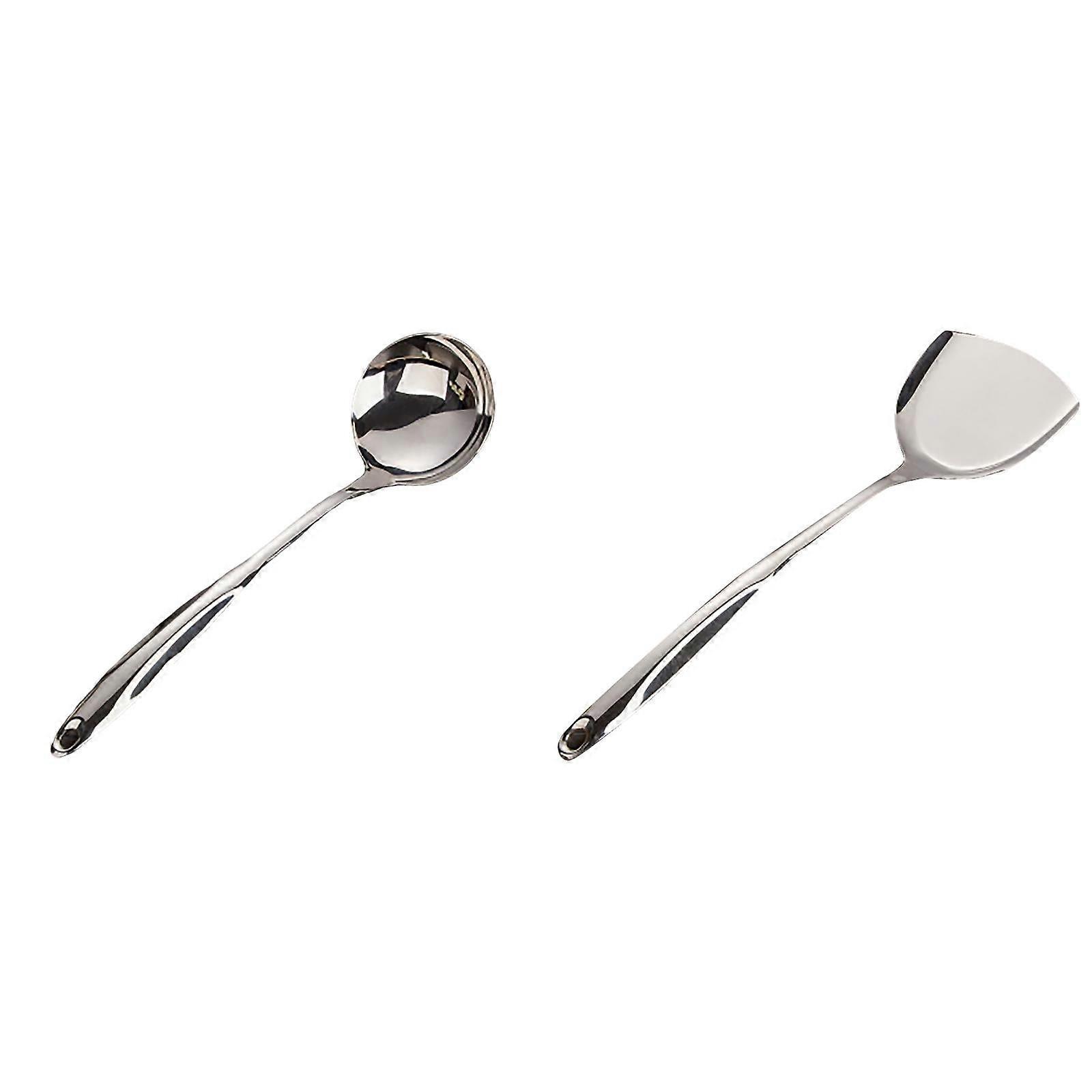 2PCS Stainless Steel Kitchen Utensils, Cooking Serving Utensils Set, Spatula, Spoon, Slotted Spatula Tunner, Spaghetti Spoon, Large Spoon