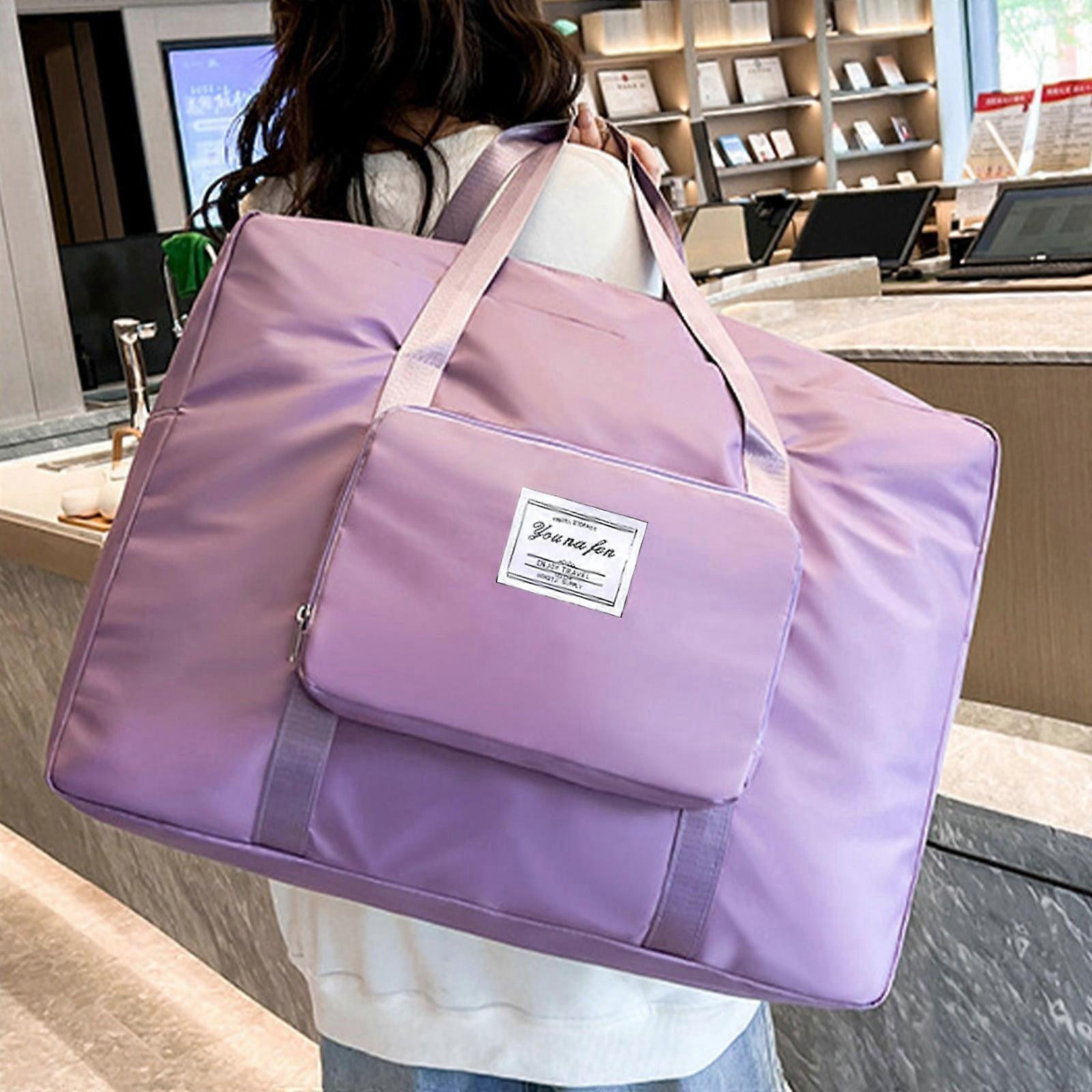 Large Expandable Travel Tote Bag with Trolley Sleeve & Wet Pocket – Nylon, Purple, Compatible with FAJHHA